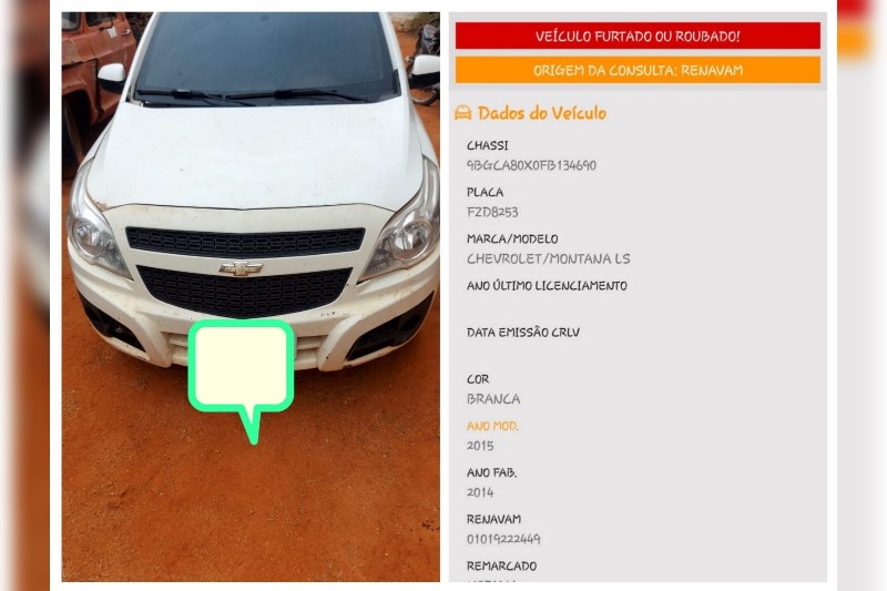 Em Tanhaçu, a cerca de 70 km do Tardezinha Sound Bar em Brumado, na tarde deste domingo (24), o Batalhão de Brumado recuperou um veículo, Chevrolet Montana de cor branca, que circulava com placas clonadas.