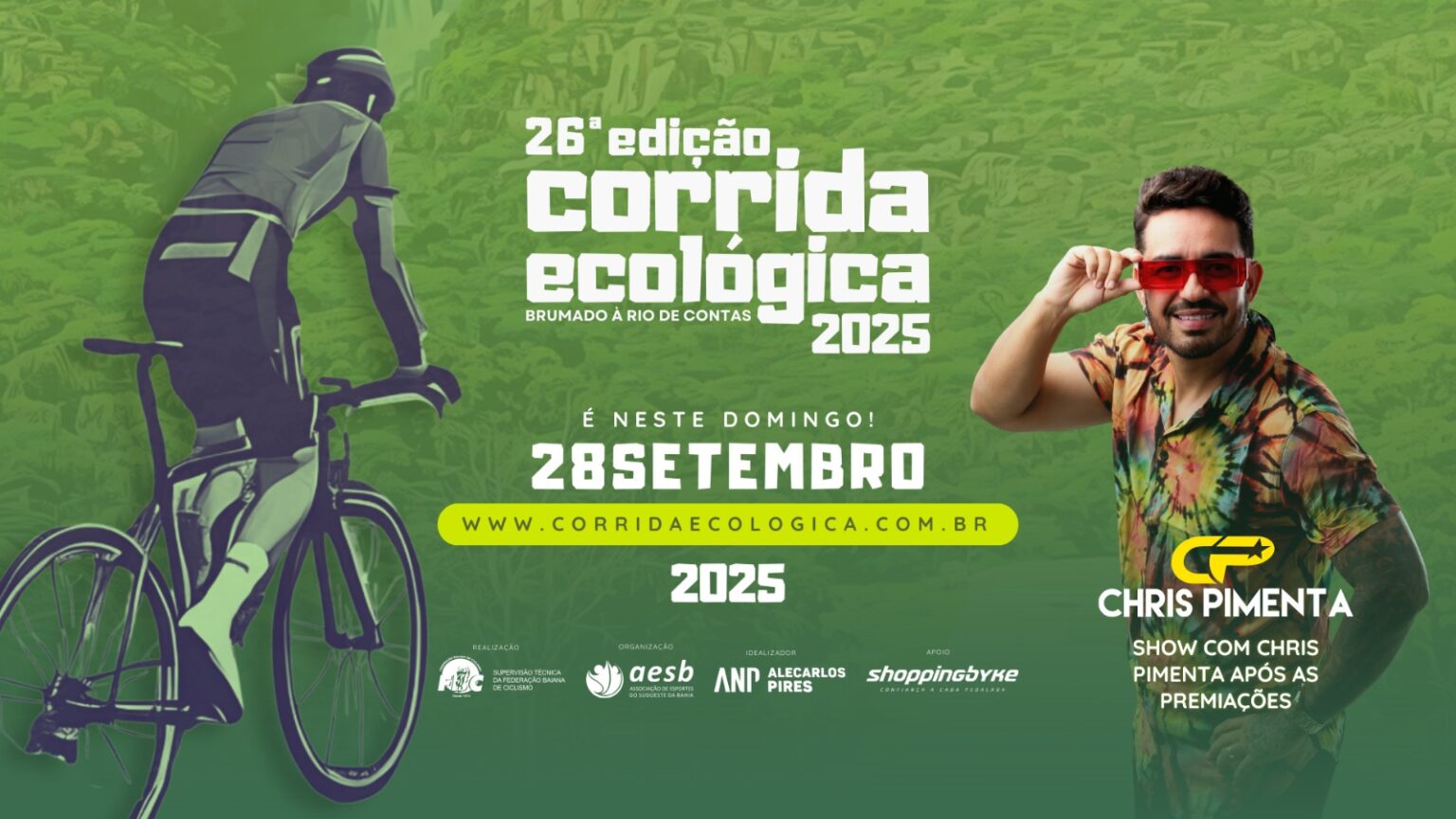 A tradicional Corrida Ecológica Brumado – Rio de Contas chega à sua 26ª edição neste domingo, 28 de setembro de 2025. O evento reúne ciclistas de várias partes do Brasil em um percurso desafiador e cheio de emoção pelas estradas do sudoeste baiano.