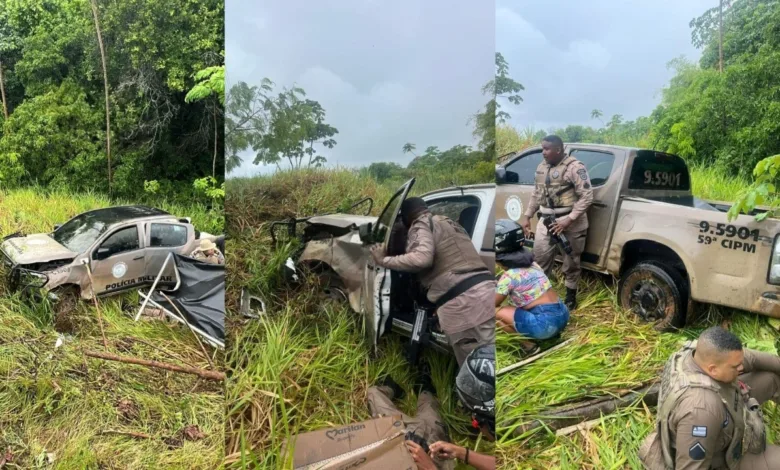 Assista: Acidente com viatura da 59ª CIPM mobiliza Samu e Helicóptero da PM na BA-099