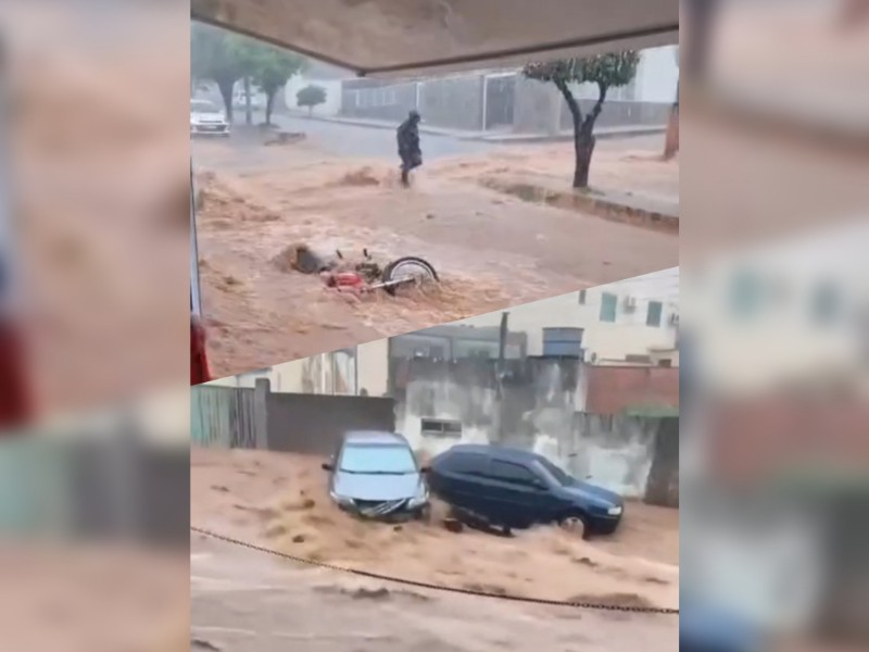 Imagens que circularam nas redes sociais mostram verdadeiras correntezas tomando conta das vias, arrastando carros e motos, enquanto a população tentava se proteger da enxurrada.