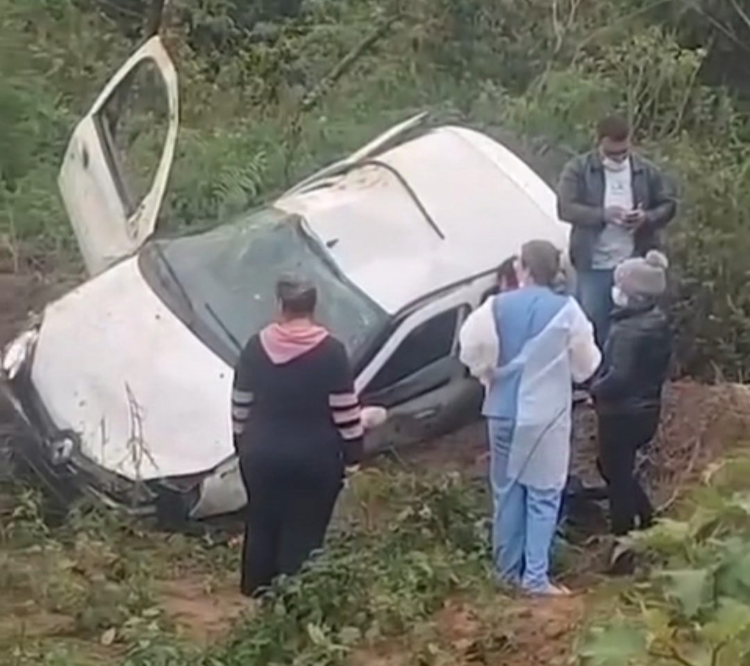 O carro teria capotado após desviar de um buraco. Quatro pessoas tiveram ferimentos leves.