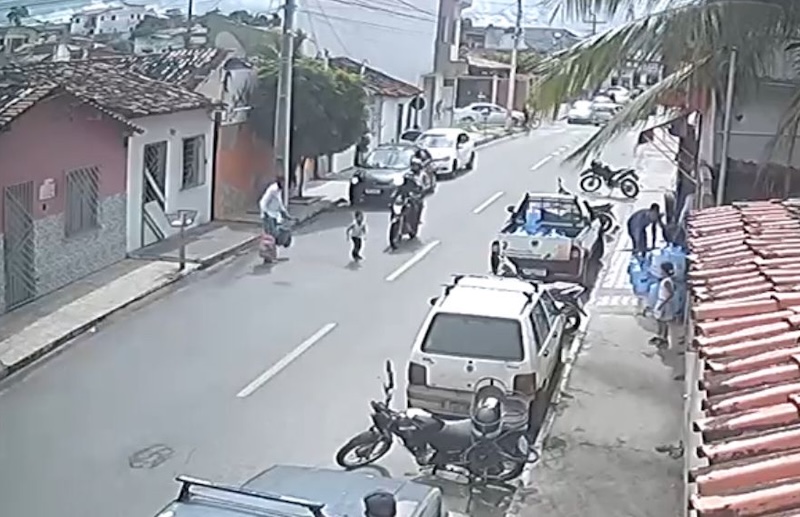 Assista: Criança é atropelada por motocicleta ao sair de escola em Jequié