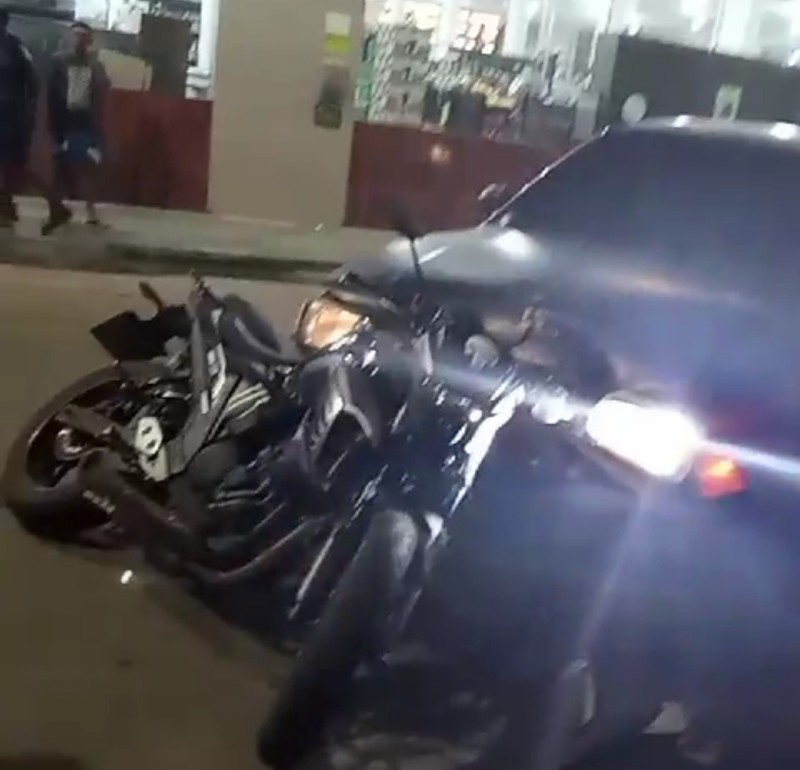 Um motociclista sofreu escoriações após uma colisão entre carro e moto em um cruzamento na Avenida Exuperio Pinheiro Canguçu, região central de Brumado.