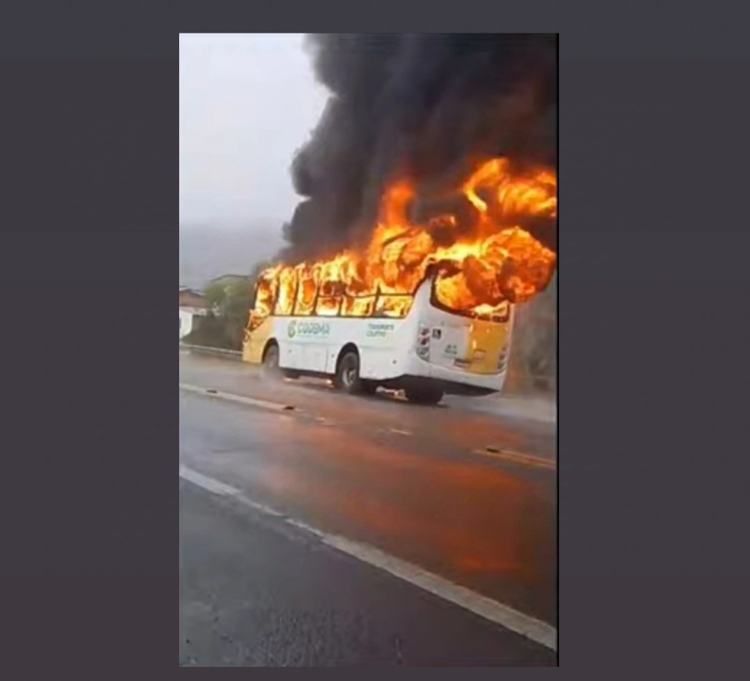 Assista: Ônibus do transporte Coletivo de Jequié fica totalmente destruído após incêndio.