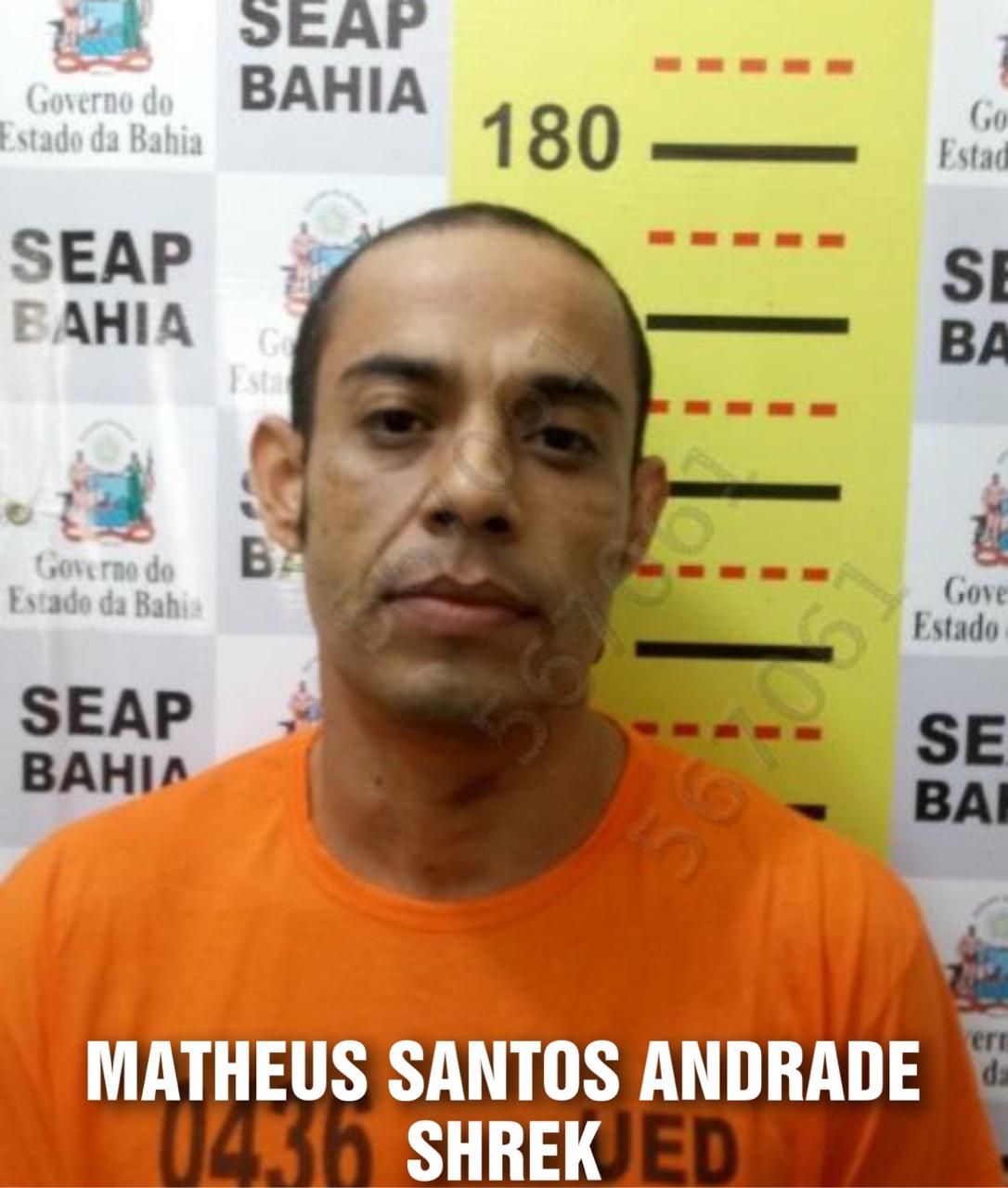Em Junho de 2015 durante uma operação deflagrada pela Cipe Cacaueira, em conjunto com a Cipe Sudoeste, Mateus (Shrek) foi preso quando estava escondido em Canavieiras. Mateus estava no momento da prisão foragido do Conjunto Penal de Jequié, era um dos mais perigosos traficantes daquela cidade. Pesa, ainda contra Shrek, a suspeita de participação em assalto ao Banco do Brasil na cidade de Condeúba, em junho de 2013. Matheus é acusado de vários homicídios em Jequié,