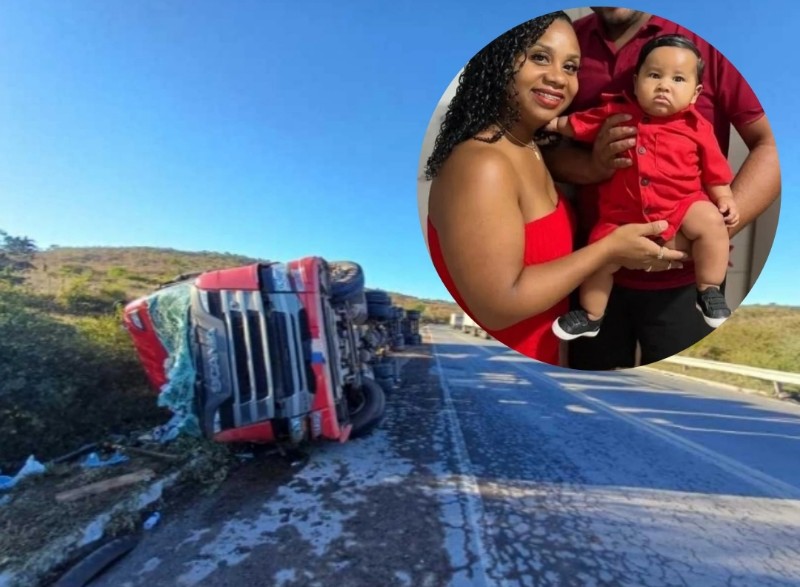 Uma mulher e o filho de 10 meses morreram após uma carreta tombar na madrugada desta sexta-feira (20), na BR-116, no trecho de Poções, no sudoeste da Bahia. O condutor do veículo, pai do bebê e companheiro da mulher, teve ferimentos.