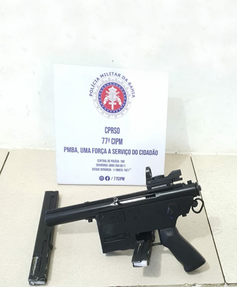 Seguindo orientações dos reis magos, militares da 77ªCIPM, Vitória da Conquista, “só pra ver qual é a de mesmo”, deram um bote no bairro Nova Cidade, na Suíça baiana, quando boca de 15h30m, o PETO, recebeu o bizu de um cidadão, o qual informou ter batido o zoi em um cramunhão levando uma arma de fogo, o fuxiqueiro deu as características do mesmo e em cima do rastro os guerreiros foram até o local e bateram de frente com o seboso com as mesmas características informadas. O cramunhão ao perceber a viatura tentou dar pinote, mas foi rapidamente contido pelos ágeis militares. Durante o baculejo foi encontrada no interior de sua mochila, uma Submetralhadora, calibre 9 mm, acompanhada de dois carregadores. Ainda segundo os brocadores, no perguntado o seboso largou que estava transportando o armamento a mando de um cabeça de uma facção criminosa, envolvida com tráfico de drogas e que atua na cidade. O cu de galinha recebeu voz de prisão dos Petianos e foi apresentado na central do DISEP juntamente com a “macaquinha 9mm”.