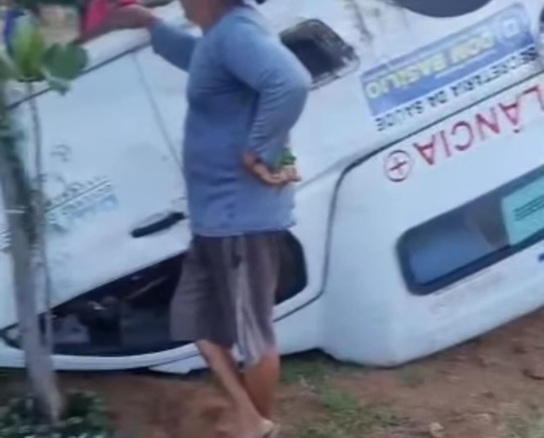 Uma ambulância da frota da Secretaria de Saúde do Estado em serviço na Prefeitura de Dom Basílio, capotou no fim da tarde de ontem, quarta-feira (10) na entrada do município de Brumado, trecho da BA-148 Brumado -Livramento deixando quatro feridos.