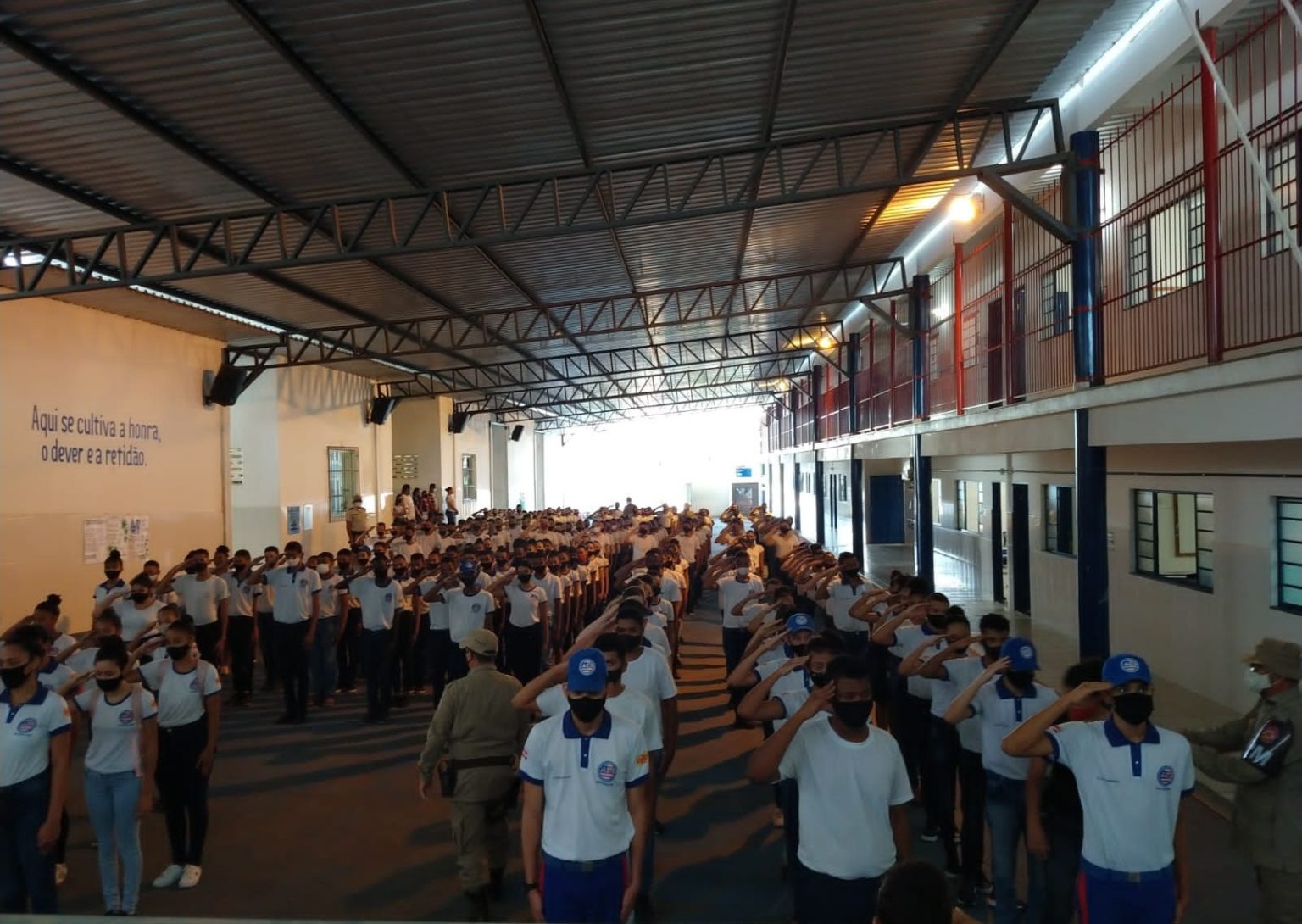Na manhã de hoje (19) a Escola em Tempo Integral Modelo Cívico Militar Idalina Azevedo Lobo, realizou a comemoração do Dia da Bandeira. A solenidade contou com a presença do prefeito municipal Eduardo Vasconcelos, da Cmt da 34 CIPM Maj Leila Souza Gonçalves Silva, do Secretário de Educação do município o Sr. João Nolasco e da Secretaria Desenvolvimento Social Edneia Ataíde, além dos Representantes do conselho de segurança, Sr Glaber e o Sr Alessandro Silva e demais autoridades. A escola Idalina conta com cerca de 350 alunos do ensino fundamental que íntegra a rede municipal de educação e funciona no modelo de gestão compartilhada em parceria com Polícia Militar da Bahia.