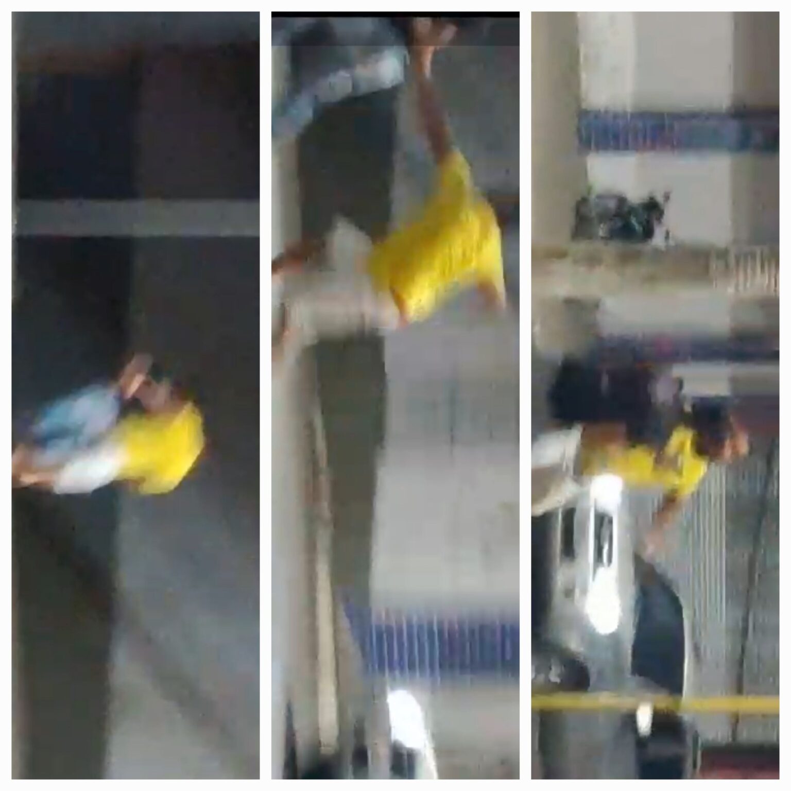 O caso aconteceu na Avenida Centenário. Nas imagens é possível ver que um dos envolvidos chega a agredir o outro com “uma tapa”, mas a picuinha rapidamente se desfaz e as cenas seguintes são uma verdadeira “briga de gato e rato”, onde o gato mais gordinho, corre atrás do ratinho assustado que insiste em mandar o oponente montar a base.