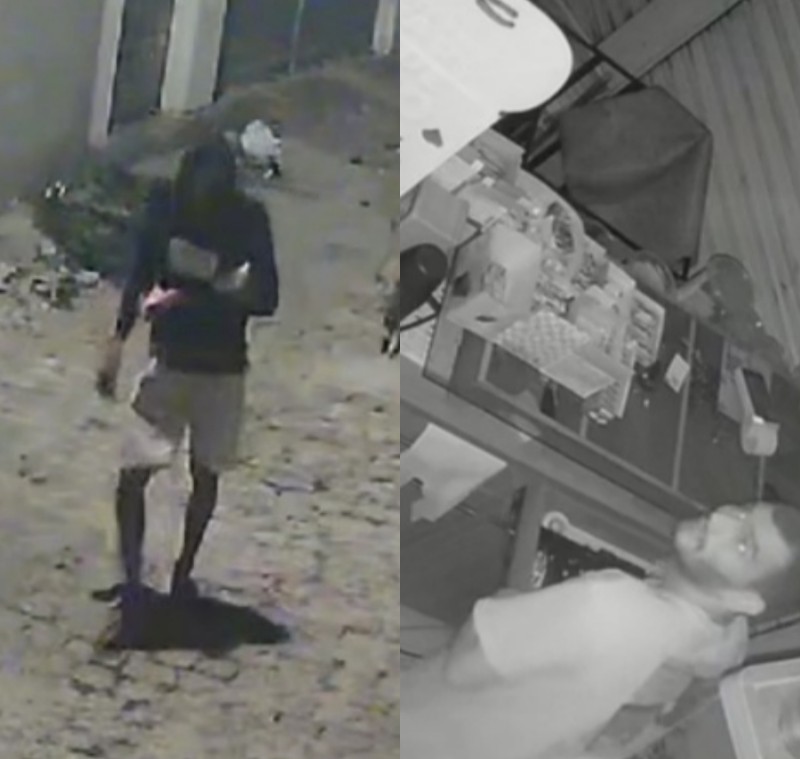 Uma das lojas arrombadas fica na rua Coronel Tibério Meira. Câmeras de videomonitoramento mostram o momento em que o lazarento de Vulgo Suel chega na loja no dia (4). O proprietário informou que máquinas de construção civil foram levadas. (Maquita, martelete e furadeira). Suel é sempre acompanhado de uma mulher, que observa e avisa sobre aproximação da Polícia.