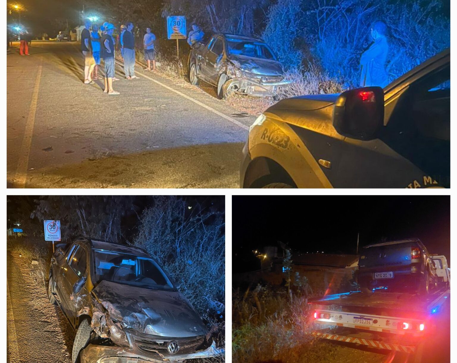Um Saveiro, de cor cinza, saiu da pista na curva da chegada ao distrito e bateu num barranco próximo ao Posto de combustível, após capotar, ficou no meio da Pista que é asfaltada. Dois ocupantes foram levados para o Hospital Municipal após receberem o atendimento do Samu no local.