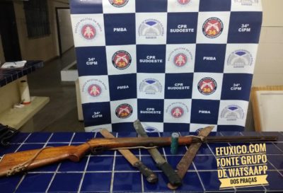 Segundo o grupo de Watsaapp dos praças na noite de Sábado (28) dia comer água e bater a Gilete no azulejo, contudo com a chegada da pandemia a turma so quer lavar as mãos para a vida e mais nada, uma equipe da Rádio Patrulha da 34cipm a guardiã dos Portais da Chapada e do Sertão, foi informada pelo CICOM sertão produtivo, que na Fazenda Arrecifinho, um Homem estaria com um “pau de fogo” (espingarda) , mantendo a sua esposa presa em quarentena na “tora” em casa”. Chegando na localidade, a equipe foi recebida por dois homens todo se tremendo, os quais se identificaram como parentes da vítima e auxiliaram os militares a chegar na residência quer fica num local de difícil acesso, uma verdadeira “masmorra” ,na “bruxa” os policiais avistaram o “coisa ruim”, que não comeu nada para negócio de polícia de Brumado, deu a testa, bateu de frente, chegou até tentar colocar a passarinheira para funcionar, mas a bicha bufou, com isso os técnicos militares estaduais, tiverem que o usar das técnicas de artes marciais do Sul da China, e deu uma sapecada no “xibungo” resistente com ele “apeado” amarradinho e mais calminho, foi possível resgatar a princesa do Arrecifinho e recolher as armas do príncipe mau. Com esse fato pitorescos da zona rural para registrar , a guarnição conduziu o lazarento é sua esposa que era mantida na masmorra do seu Castelo e todo o material apreendido para a Delegacia Territorial de Brumado, mas antes o príncipe deu uma rápida passadinha no hospital, pois a arte marcial Chinesa deixaram alguns estragos no muito doido.