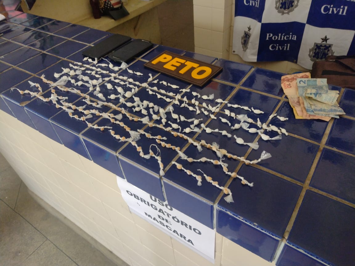 Vendo toda aquela cena, os Guerreiros relataram que foi realizada uma entrevista com técnicas de investigação forense, onde a lazarenta de 37 anos declarou que era prima da dona do boteco, contudo os sobrenomes não tinham nada haver, com isso, foi realizado um baculejo no butiquim, onde foram encontradas, 108 porções de cocaína e 107 porções de crack, tudo prontinho para a venda na Lojinha da Benjamin Santos. A Pomba Suja foi conduzida para a delegacia, onde se descobriu que ela já tem passagem por tráfico nos Estados de Alagoas e São Paulo e agora anotou mais uma passagem na Bahia. “-Tá vendo aí? As “Damas do Pó” estão caindo uma por uma!