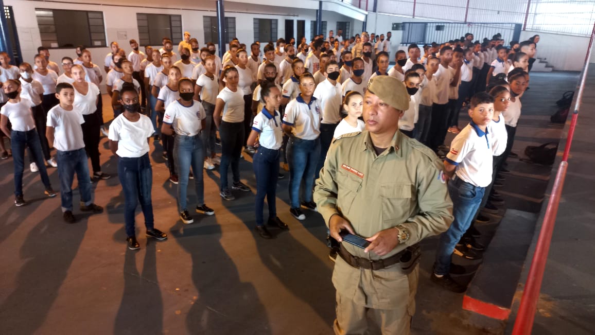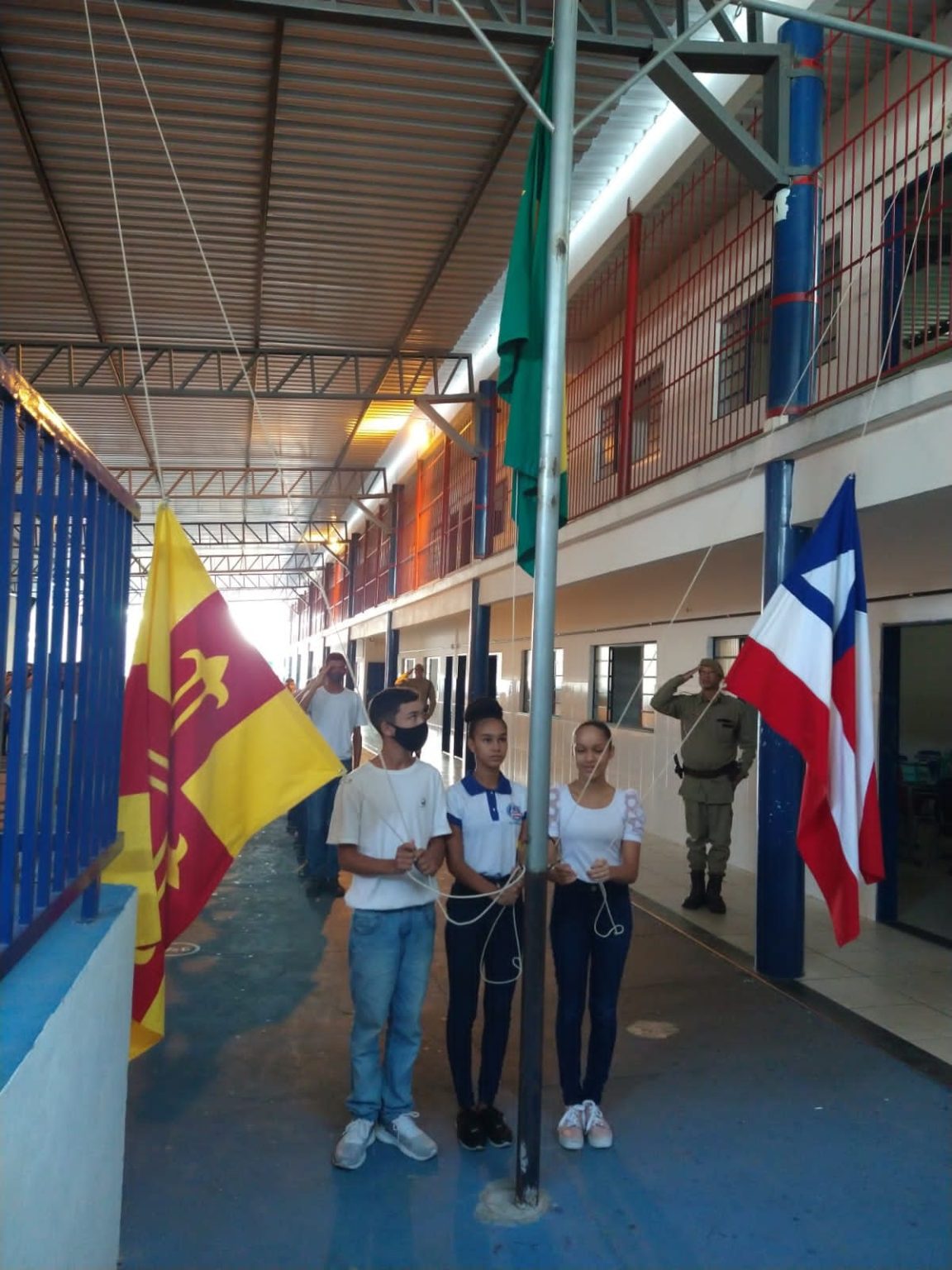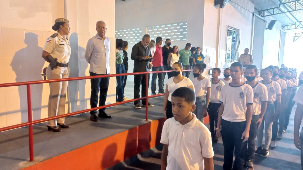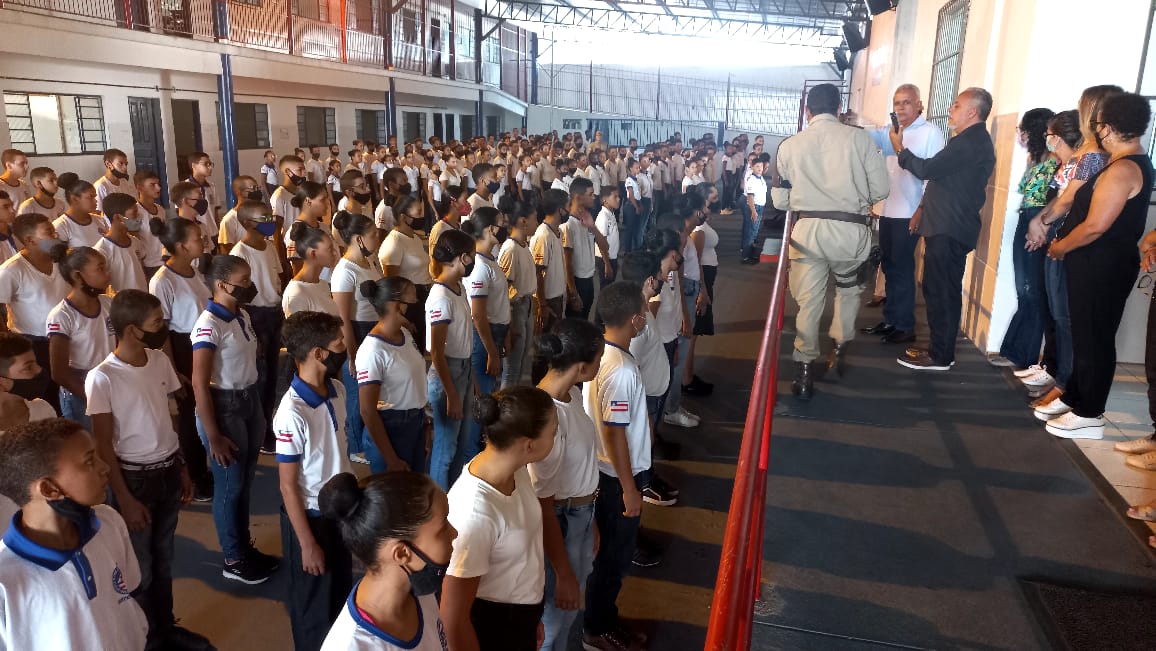 A aluna CPM Ana Clara do 9° Ano A, apresentou a escola em forma, mantendo os ritos militares, logo depois o comandante da PM dos últimos 6 anos realizou uma breve palestra para os alunos. O Oficial Superior “aposentado”, pontuou que veio de origem humilde, assim como muitas crianças que ali estavam, explanou que ainda cedo já ajudava os pais a lidar com a terra e a criar animais no sertão de Juazeiro no norte do estado e que buscou nos estudos uma forma de vencer na vida e ajudar os seus genitores, relatou ainda, que assim como os discentes ali enfileirados, estudou em um colégio militar em Salvador e que como seus irmãos (praças da PM), decidiu seguir a vida militar, passando num vestibular e entrando na Academia da Policia Militar de onde saiu oficial.
