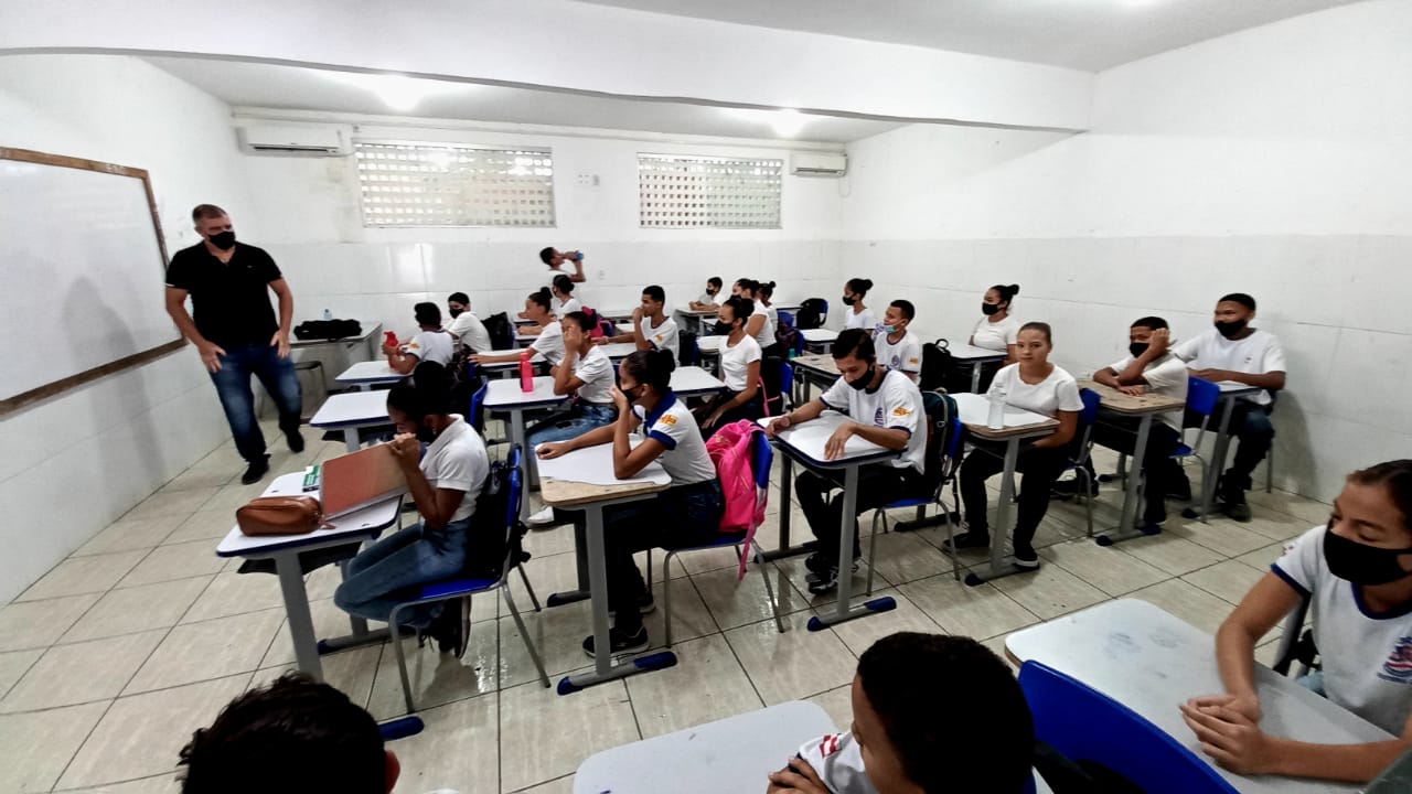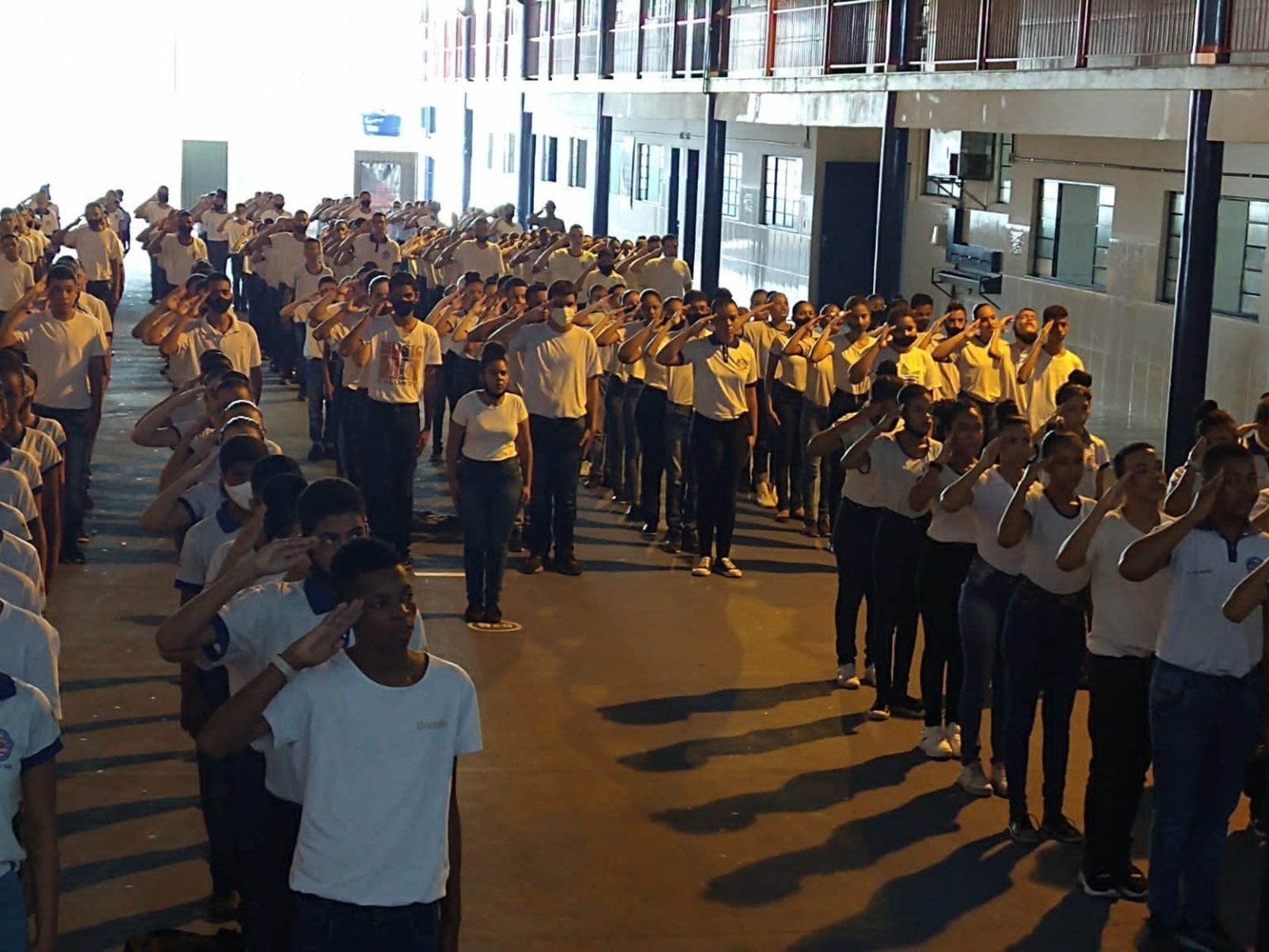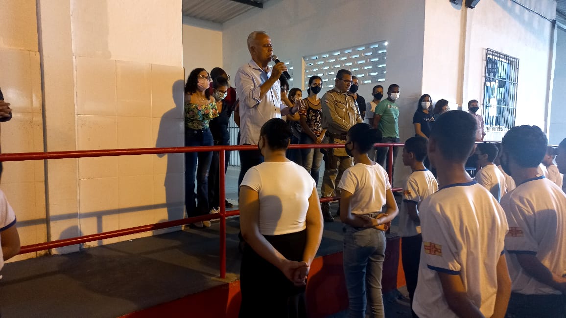 A aluna CPM Ana Clara do 9° Ano A, apresentou a escola em forma, mantendo os ritos militares, logo depois o comandante da PM dos últimos 6 anos realizou uma breve palestra para os alunos. O Oficial Superior “aposentado”, pontuou que veio de origem humilde, assim como muitas crianças que ali estavam, explanou que ainda cedo já ajudava os pais a lidar com a terra e a criar animais no sertão de Juazeiro no norte do estado e que buscou nos estudos uma forma de vencer na vida e ajudar os seus genitores, relatou ainda, que assim como os discentes ali enfileirados, estudou em um colégio militar em Salvador e que como seus irmãos (praças da PM), decidiu seguir a vida militar, passando num vestibular e entrando na Academia da Policia Militar de onde saiu oficial.