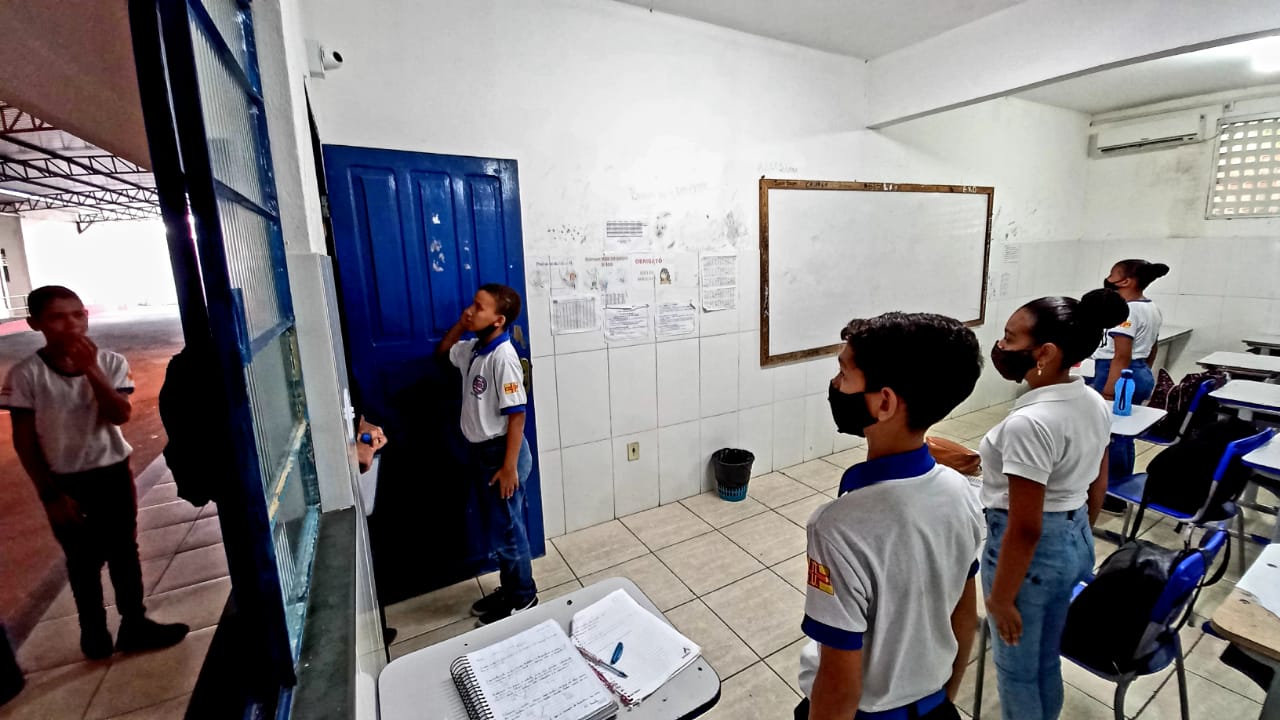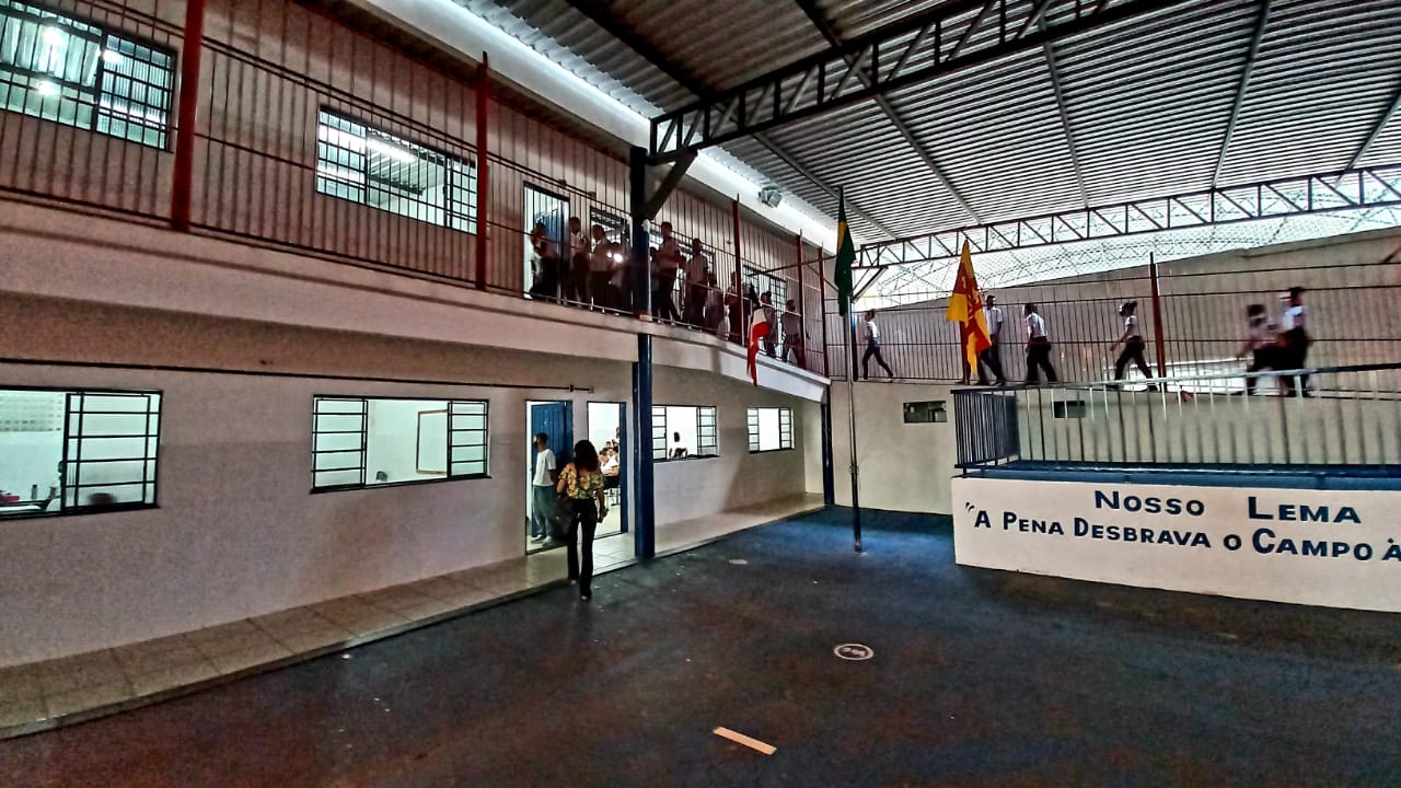 A visita ocorreu no turno matutino, logo após o café da manhã que é servido todos os dias na unidade de ensino, neste horário diariamente ocorre a parada matinal, onde há o hasteamento das bandeiras e o canto do hino nacional.