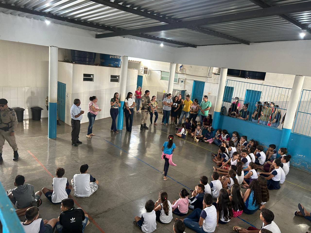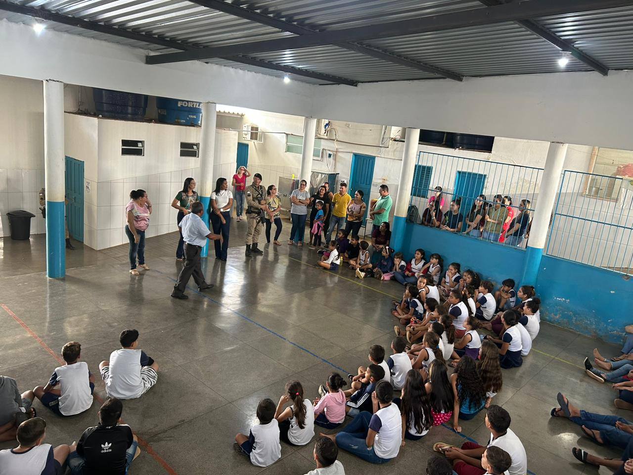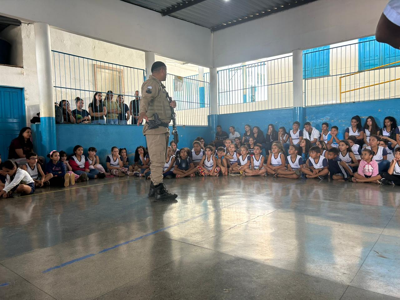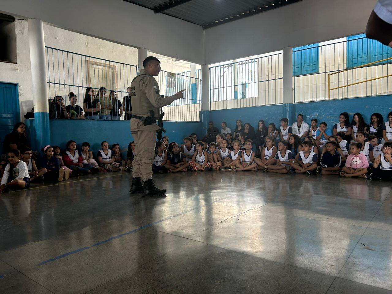 Brumado: Policiais do 24º Batalhão de Polícia Militar visitam escola municipal de Tempo Integral Ana Rodriga Teixeira em Cristalândia.