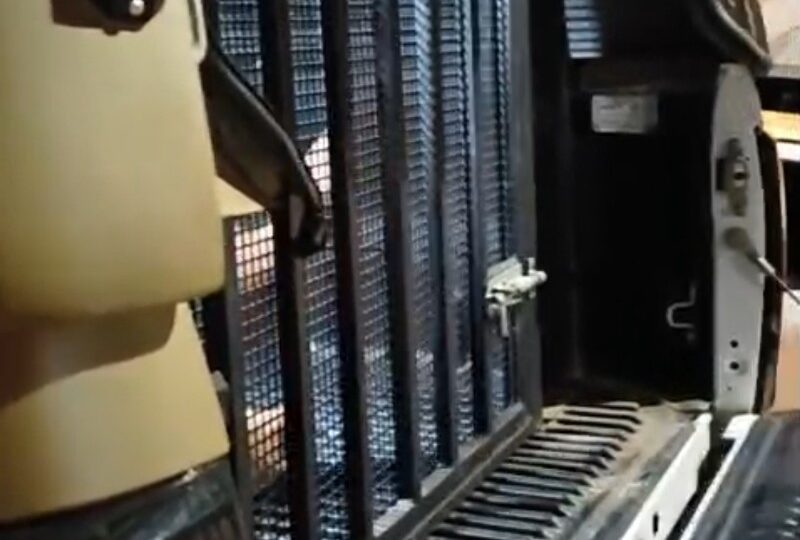 Com a chegada da PM, ele encheu o Cu de coragem e passou a desacatar os policiais e tentou agredi-los, sendo necessário o uso de algemas e spray de pimenta para contê-lo. Já na viatura, monga continuou o surto, chutando o xadrez.