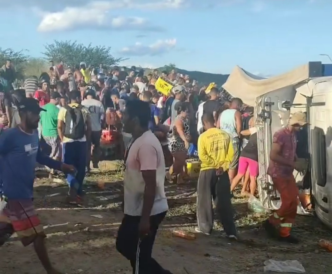 Conforme relatos de pessoas que passavam pelo local, parte da carga foi saqueada, após a informação que os produtos haviam sido liberados.