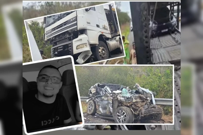 Cegonheiro desobedece Pare e Siga, passa por cima de caminhonete, ferindo três e matando um em Jequié.