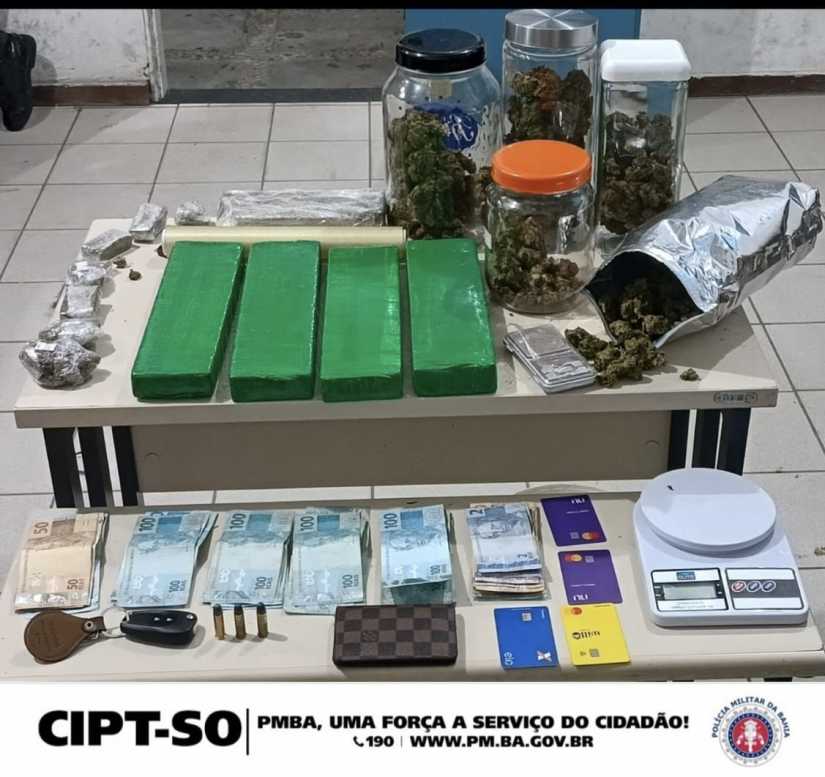 Durante um patrulhamento tático na noite de ontem (05), foi dada uma brocada que resultou numa apreensão grande de drogas e dinheiro que estava com um suspeito em Vitória da Conquista. A quantidade de maconha apreendida se aproxima de quatro quilos.