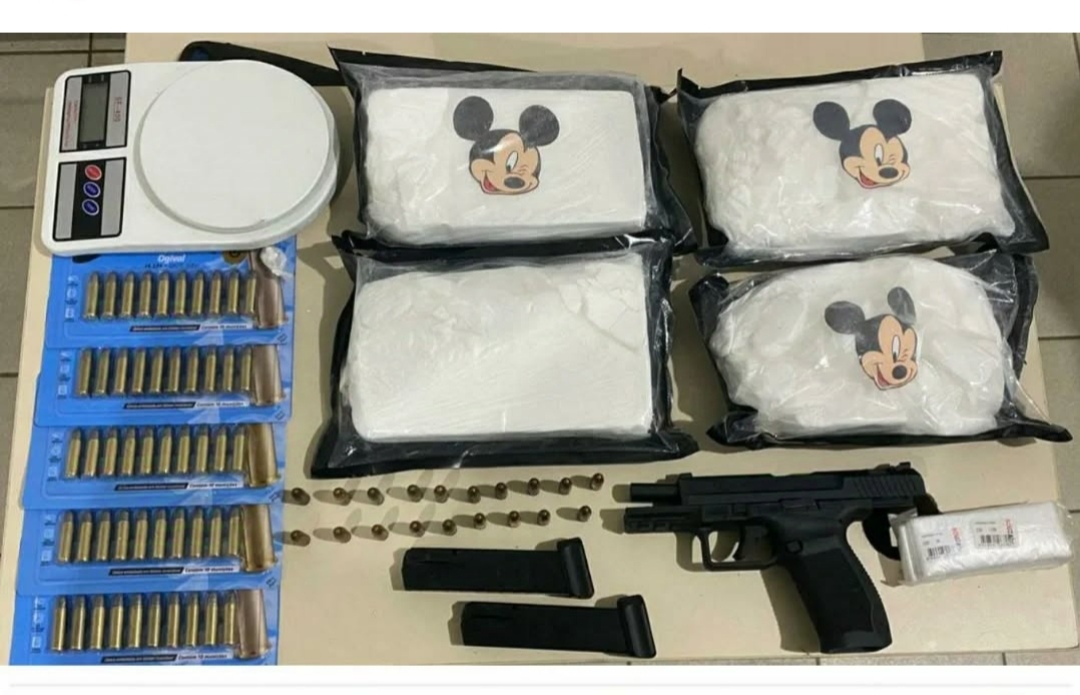 Na noite da última sexta-feira (13), a Polícia Militar, durante rondas de rotina, prendeu em flagrante um homem que transportava 4 kg de Cocaína, 1 pistola com dois carregadores municiados, balança de precisão e cartelas de munição de calibre.38. no bairro Jurema em Vitória da Conquista.