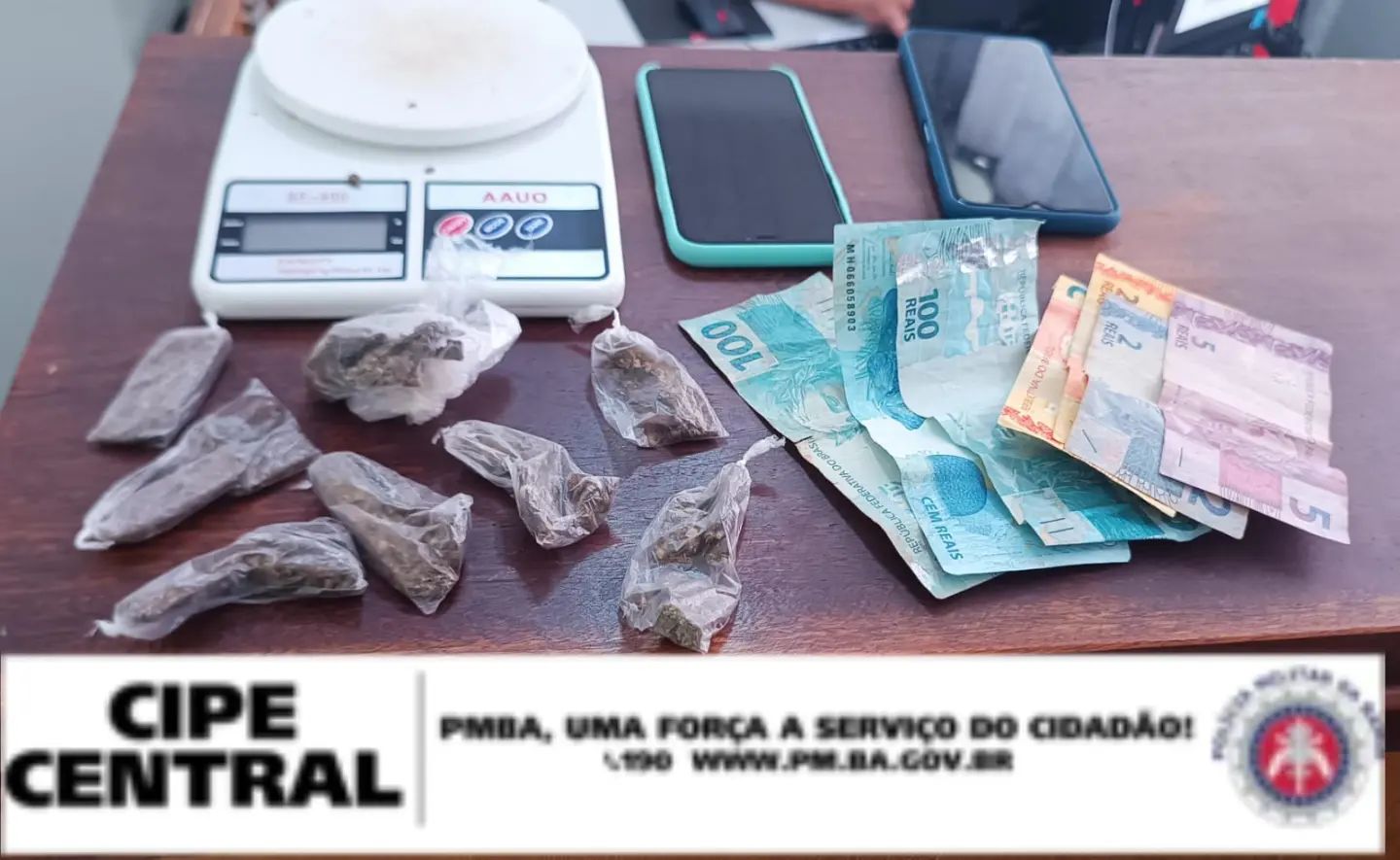 Segundo o bizu uma patrulha da CIPE CENTRAL avistou dois “Pombos Sujos” que ao perceberem a presença da viatura tentaram sair no “pinote” (evadir), os guardas “emrrabaram” os mesmos conseguindo alcançá-los. Na abordagem foi encontrado um volume que continha droga e uma balança de precisão. Os lazarentos e todo material foram apresentados na Delegacia de Tanhaçu para as medidas cabíveis.