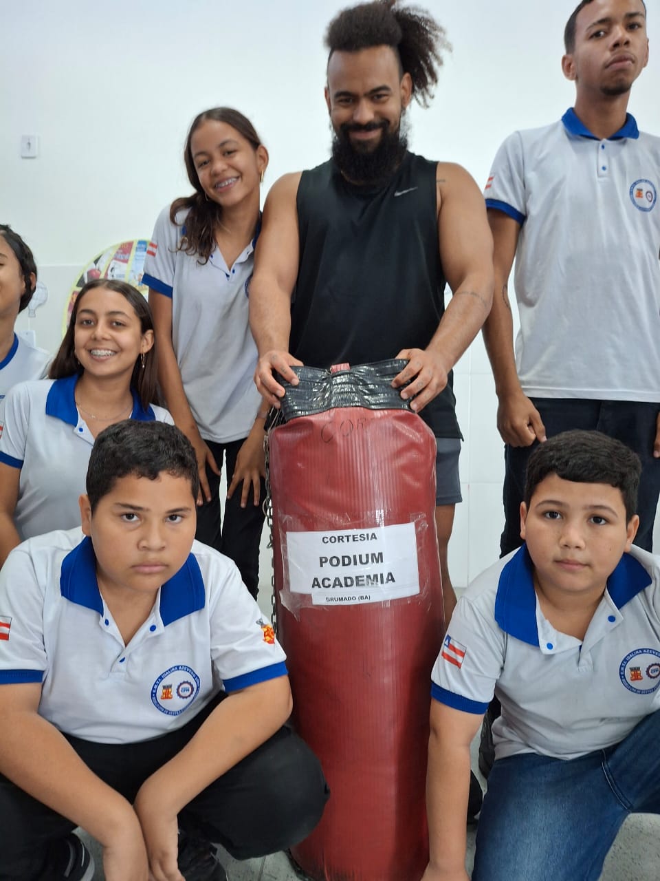 A Academia PODIUM pioneira na cidade, através de seu proprietário Nilton, fez uma grande doação de um saco de Box e 12 halteres para melhorar a prática das atividades. A Equipe Disciplinar agradece o apoio de Niltão e está aberta para doações no que tange a práticas atividades. Fecha a nota.