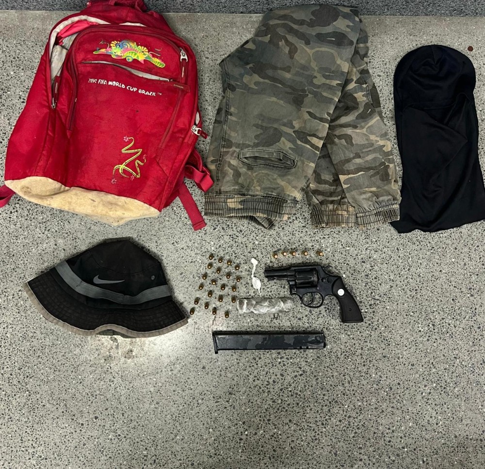 Com o curumim de 15 anos de idade foram encontrados 01 Revólver Taurus Cal. .38 N° 959564, 05 Munições Cal. .38, 01 Carregador de Pistola Cal. .9mm, 21 Munições Cal. .9mm, 01 Balaclava, 01 Mochila, 01 Calça Camuflada, 01 Cordão Dourado, 01 Chapéu Tropical, 02 Petecas de Cocaína e 07 Trouxas de Maconha. O Rumãozinho e todo material encontrado foram apresentados na delegacia da Cidade Sol. O restante do bonde segue sendo procurados.