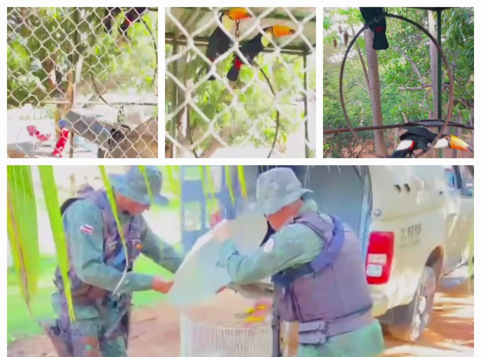 Segundo a unidade de Polícia Militar Ambiental, a equipe recebeu denúncias sobre a criação ilegal de pássaros e se deslocou até o local, onde encontrou duas araras canindé (_Ara araraunae_) dois tucanos em gaiolas. As aves foram resgatadas e encaminhadas para um centro de reabilitação na cidade de Vitória da Conquista.