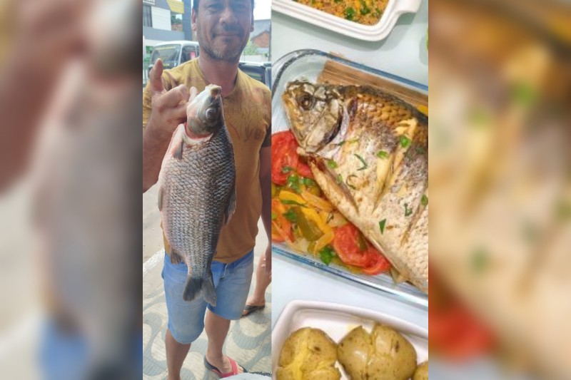 Domingo é dia do É de Cumer: Curimatá recheada com farofa de bacon do pescador manchinha de Brumado.