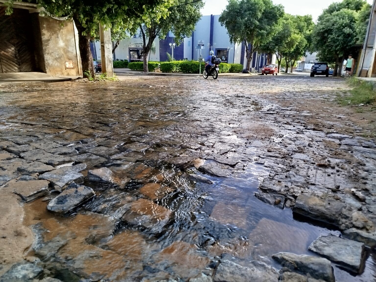 Os moradores da rua David Bonfim da Silva, próximo à Câmara de Vereadores de Brumado–BA, acordaram na manhã desta terça-feira, (04), dia em que o boteco do Fome Zero finalmente abriu após o final de semana, com um vazamento de água boa (água doce e tratada).