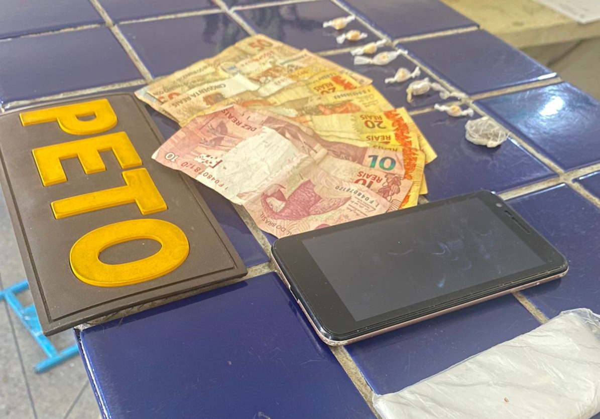 A Policia Militar de Brumado desmontou na ultima quarta-feira (17), uma “lojinha de brita” que funcionava na região da barraginha no bairro São Felix. A Boca de fumo foi desmontada quando militares do PETO-34 que realizavam rondas na modalidade moto patrulhamento perceberam uma movimentação diferente em um dos quartinhos situado no beco da Aparecida, durante o baculejo no local, foram encontradas porções de crack, maconha, 320 badaró em cédulas miúdas e um radim, (celular), comumente encontradas em pontos de vendas de drogas. uma mulher de 52 anos foi detida, a mesma negou a propriedade da lojinha e colocou a culpa em seu namorado, conhecido como Beto doido, 32. Beto é um pombo sujo, com varias passagens criminais, dentre elas: trafico de drogas, posse de arma de fogo e violência domestica. A Droga foi apresentada na delegacia, onde será apurado se o lazarento tem participação na lojinha.