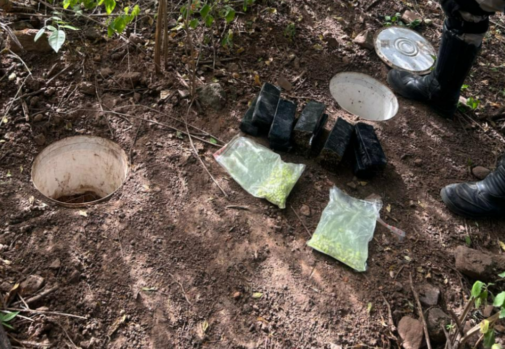Em Jequié, Polícia Militar apreende maconha enterrada em baldes plásticos.
