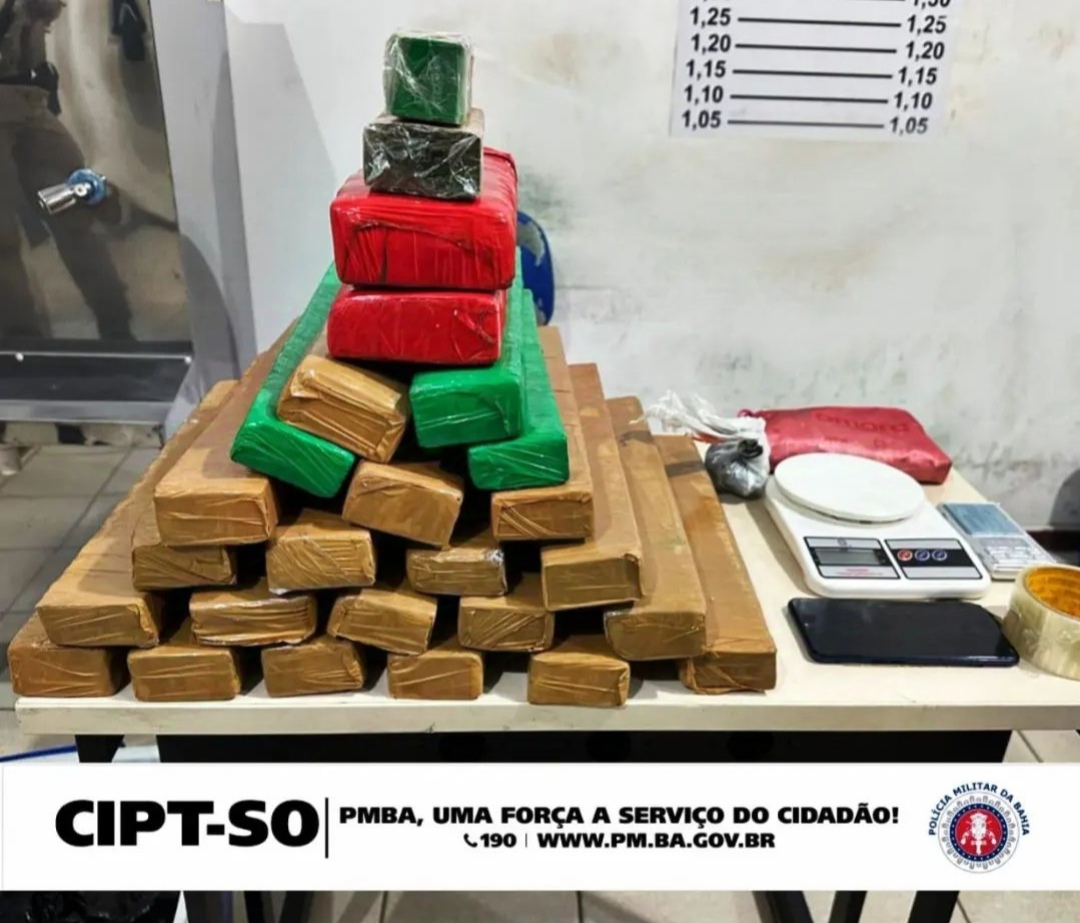 Polícia militar apreende quase 25 kg de maconha que estavam em poder de uma mulher no Bairro Ibirapuera, Vitória da Conquista–BA.