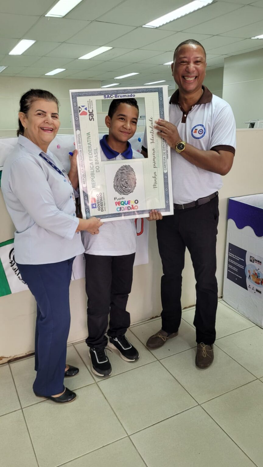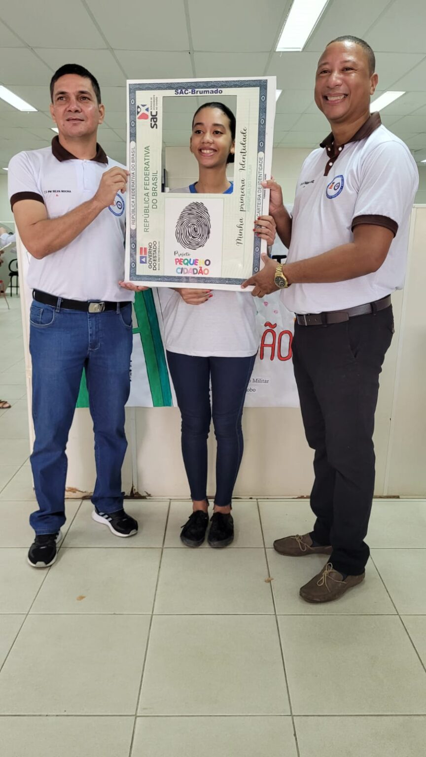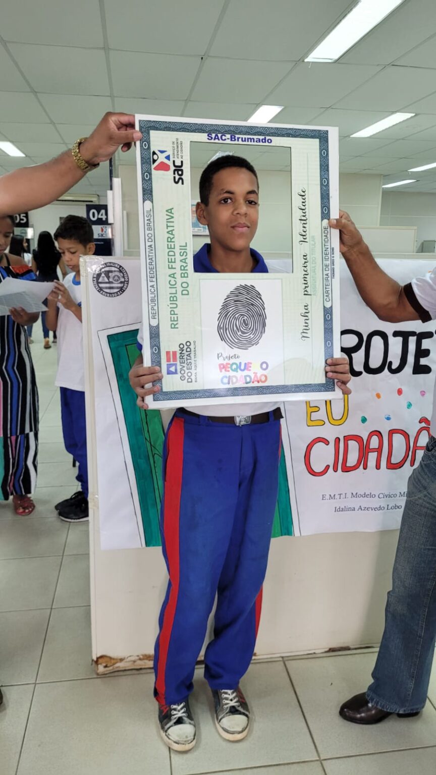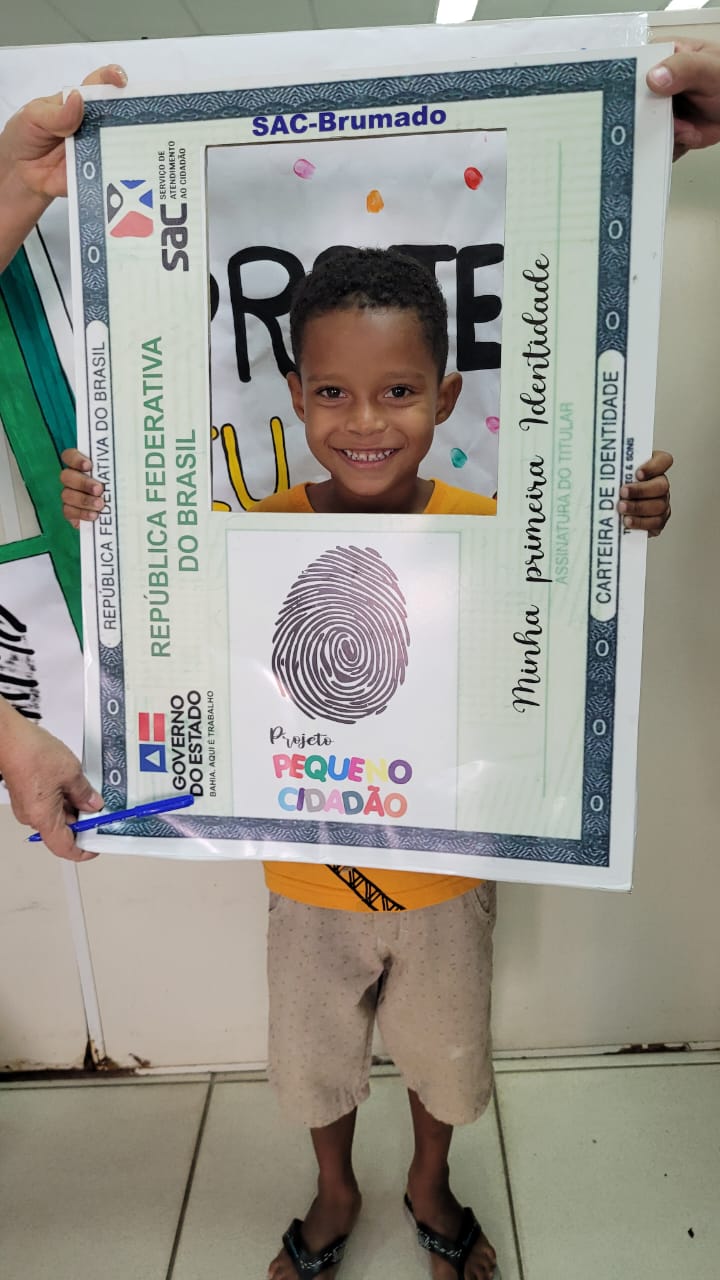 Ao menos 40 crianças de Brumado (BA) participaram neste Sabado (03) do projeto ‘Pequeno Cidadão’. O evento foi realizado sem custos Pela SAEB através da Agencia do SAC Brumado e pela Gestão Militar das Escolas Municipais de Tempo Integral; Idalina Azevedo Lobo e Oscalina Oliveira Silva, que ofereceu o acesso à primeira cédula de identidade aos estudantes das unidades Cívico-Militar
