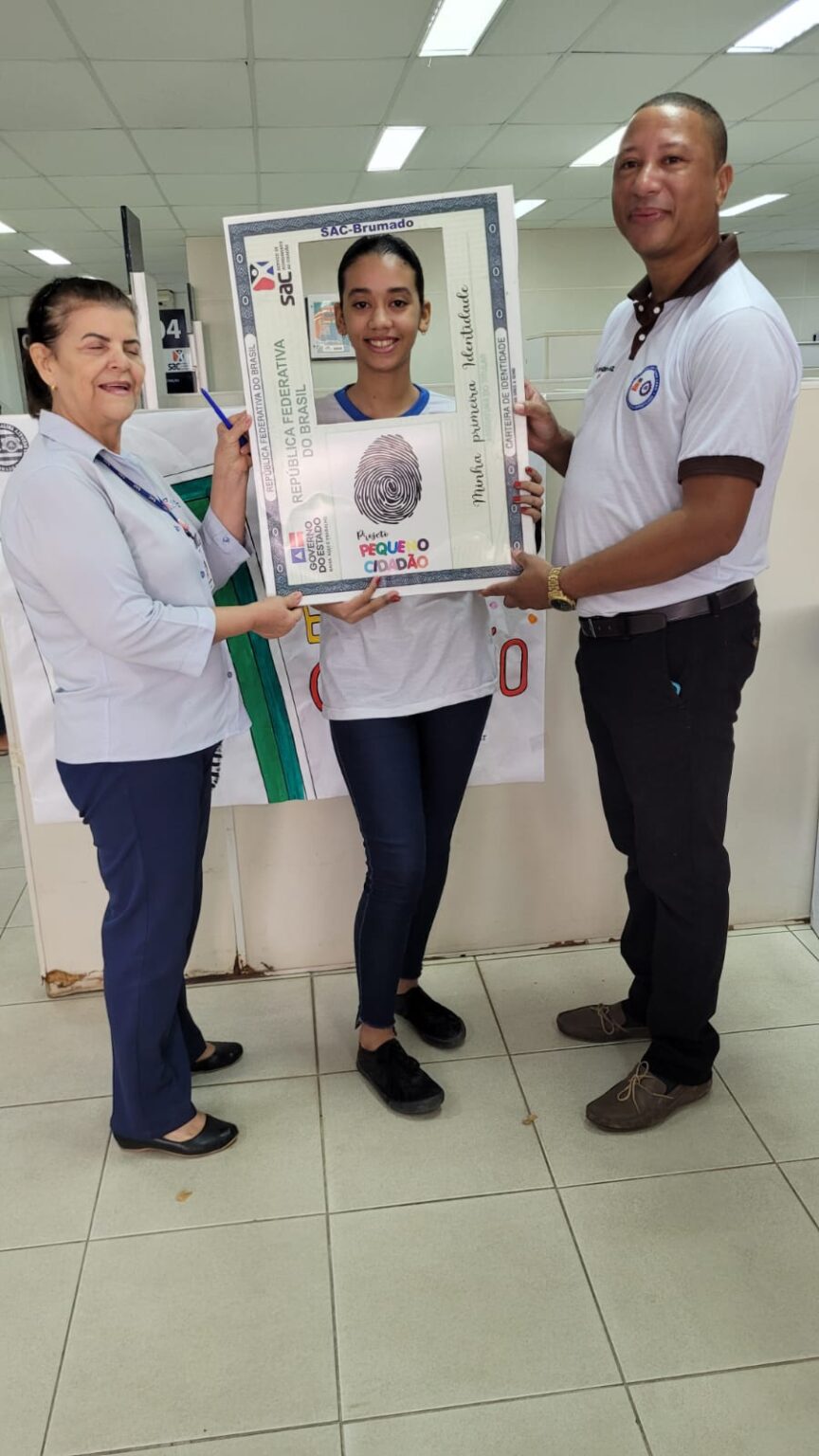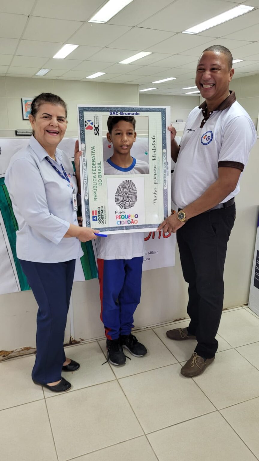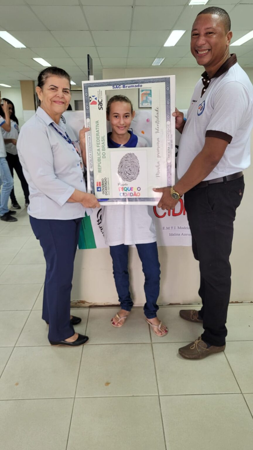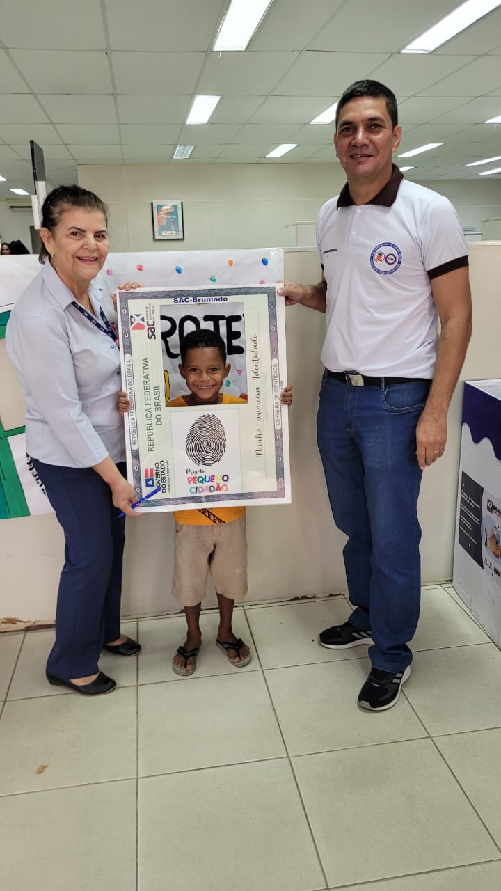 Ao menos 40 crianças de Brumado (BA) participaram neste Sabado (03) do projeto ‘Pequeno Cidadão’. O evento foi realizado sem custos Pela SAEB através da Agencia do SAC Brumado e pela Gestão Militar das Escolas Municipais de Tempo Integral; Idalina Azevedo Lobo e Oscalina Oliveira Silva, que ofereceu o acesso à primeira cédula de identidade aos estudantes das unidades Cívico-Militar