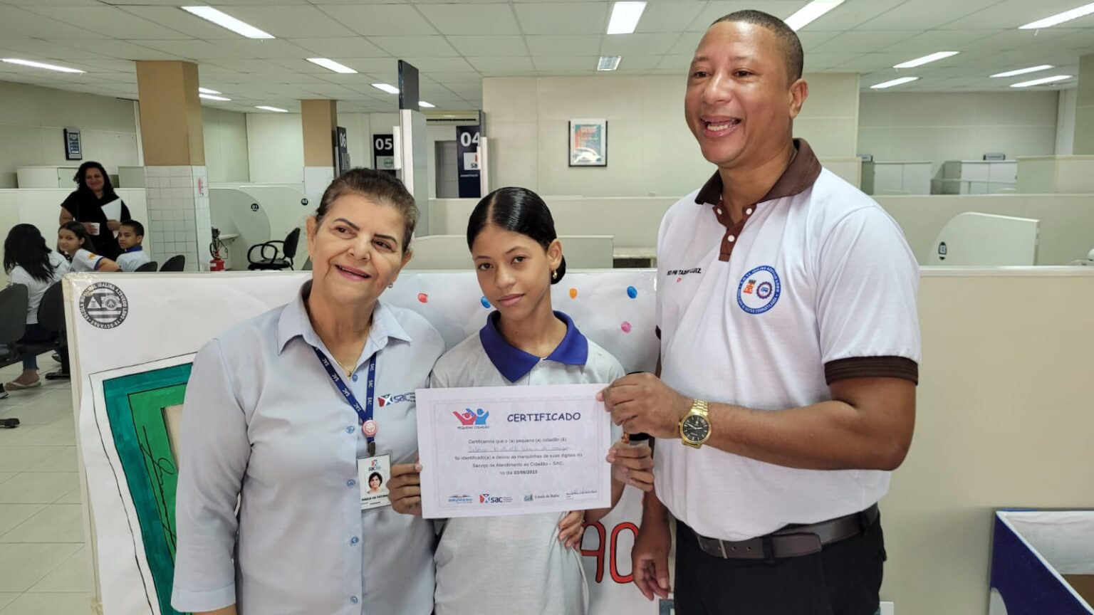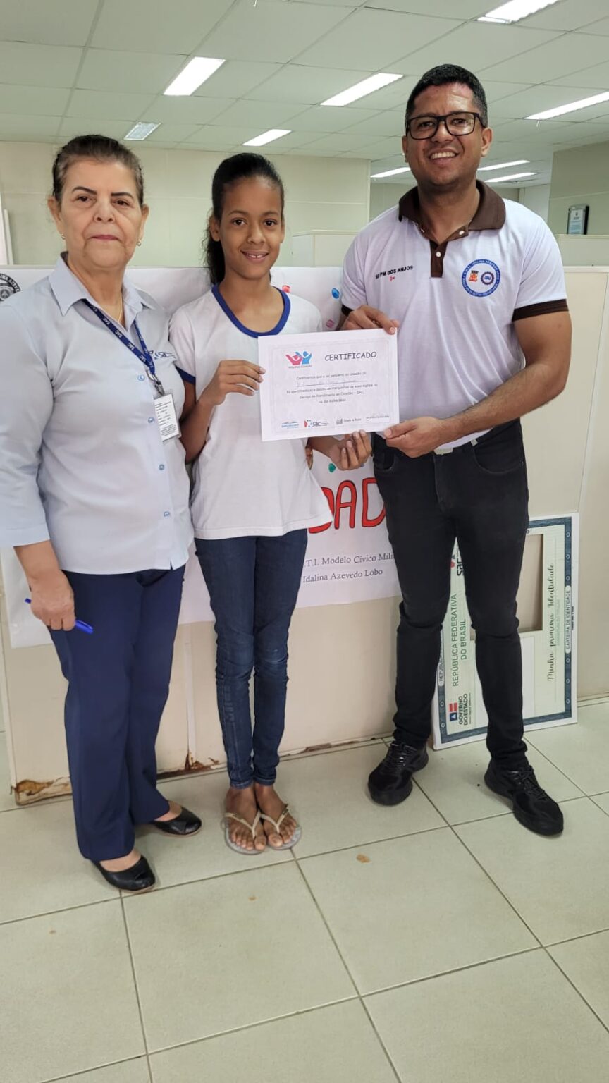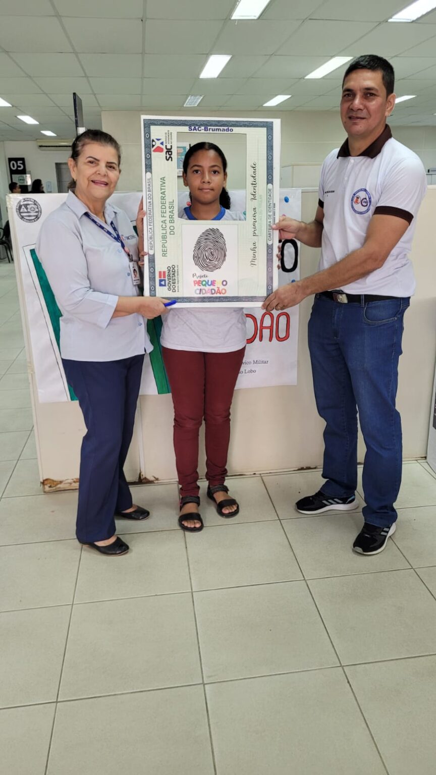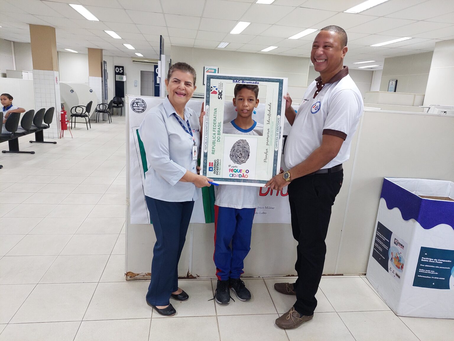 Ao menos 40 crianças de Brumado (BA) participaram neste Sabado (03) do projeto ‘Pequeno Cidadão’. O evento foi realizado sem custos Pela SAEB através da Agencia do SAC Brumado e pela Gestão Militar das Escolas Municipais de Tempo Integral; Idalina Azevedo Lobo e Oscalina Oliveira Silva, que ofereceu o acesso à primeira cédula de identidade aos estudantes das unidades Cívico-Militar