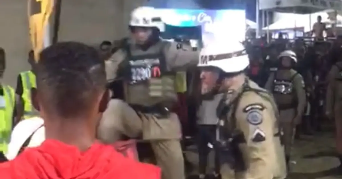 Homem ”bota a base” na frente de Policial Militar e recebe voadora durante carnaval na Bahia