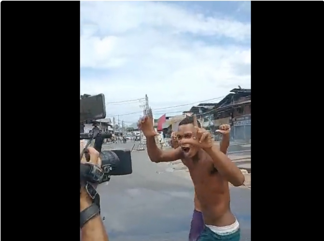 Homens fazem o ‘L’ depois de saque ao Ceasa do RJ | Imagens mostram saqueadores celebrando o incêndio no local