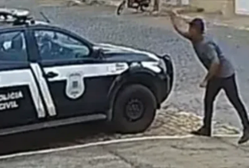 Assista: Cramunhão apedreja viatura em frente à delegacia e diz que queria ir para o pote em Brumado