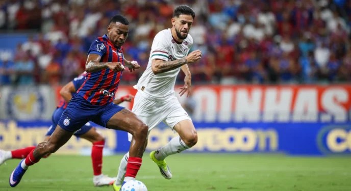 Ouvir notícia. Bahia e Fluminense empataram por 1 a 1 na noite desta quinta-feira (5), na Arena Fonte Nova, pela segunda rodada do Campeonato Brasileiro. O jogo foi movimentado, com chances para os dois lados, expulsão e muita intensidade do início ao fim. O time de Carlinhos saiu na frente ainda no primeiro tempo, com…