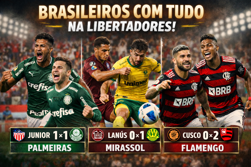 Ouvir notícia. A quarta-feira (8) foi movimentada para os clubes brasileiros na Libertadores 2026, com estreias importantes e bola na rede dentro e fora de casa. O Palmeiras iniciou sua caminhada enfrentando o Junior Barranquilla, mostrando força mesmo atuando longe de seus domínios. Já o Mirassol fez sua estreia histórica na competição continental contra o…