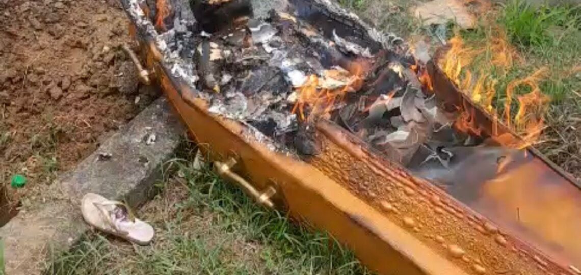 Ouvir notícia. Momentos de pânico marcaram a manhã deste sábado (17) no cemitério municipal de Coaraci, no sul da Bahia. Durante um sepultamento, homens armados invadiram o local, atiraram contra o caixão e, em seguida, atearam fogo à urna funerária, com o corpo ainda dentro. A ação foi rápida e espalhou o desespero entre familiares…