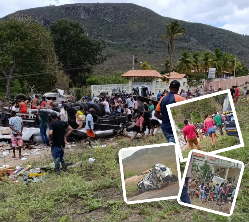 BR-116: Grave acidente envolvendo carreta e carro deixa dois mortos em Milagres. Carga foi saqueada.