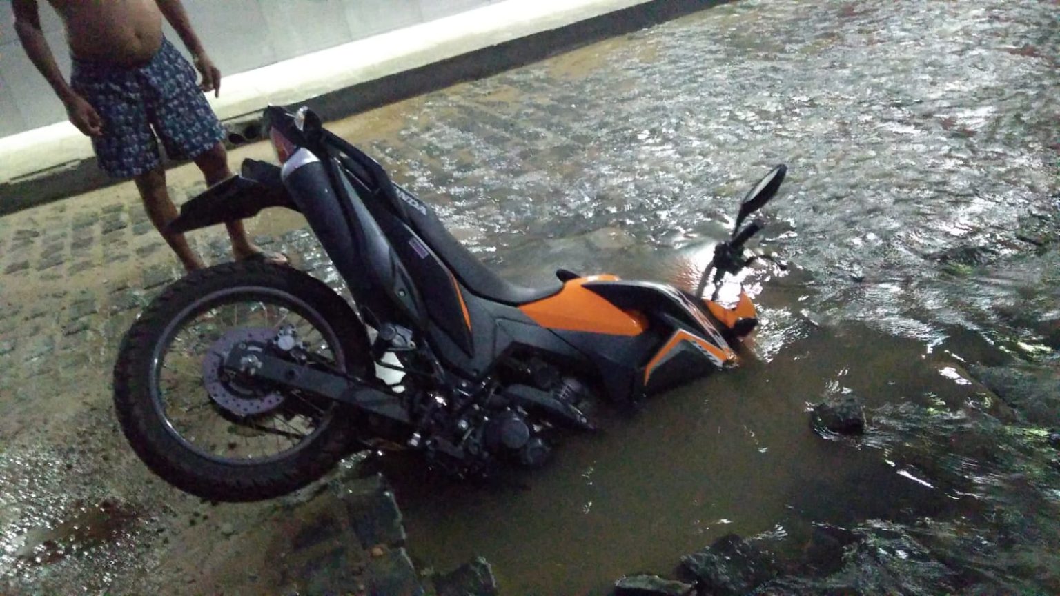 Uma cabrita foi engolida por um buraco e a motociclista levou uma queda violenta onde sofreu escoriações pelo corpo. A vítima contou ao site parceiro que estava indo para o trabalho na manhã da última segunda-feira (18) e chovia muito no momento que ela passava por uma poça dágua, mas na verdade era uma cratera e a moto foi engolida. O acidente ocorreu no bairro Espirito Santo, próximo a praça do Agarrajão em Jequié. Após o ocorrido, o local foi sinalizado e a Prefeitura acionada para resolver o problema.