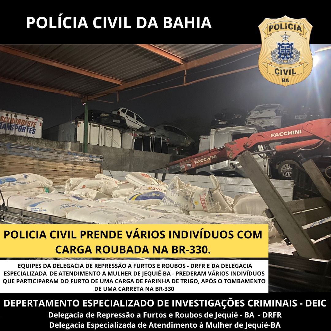 Jequié: Polícia Civil captura Pombos Sujos que saquearam carga de farinha de trigo.