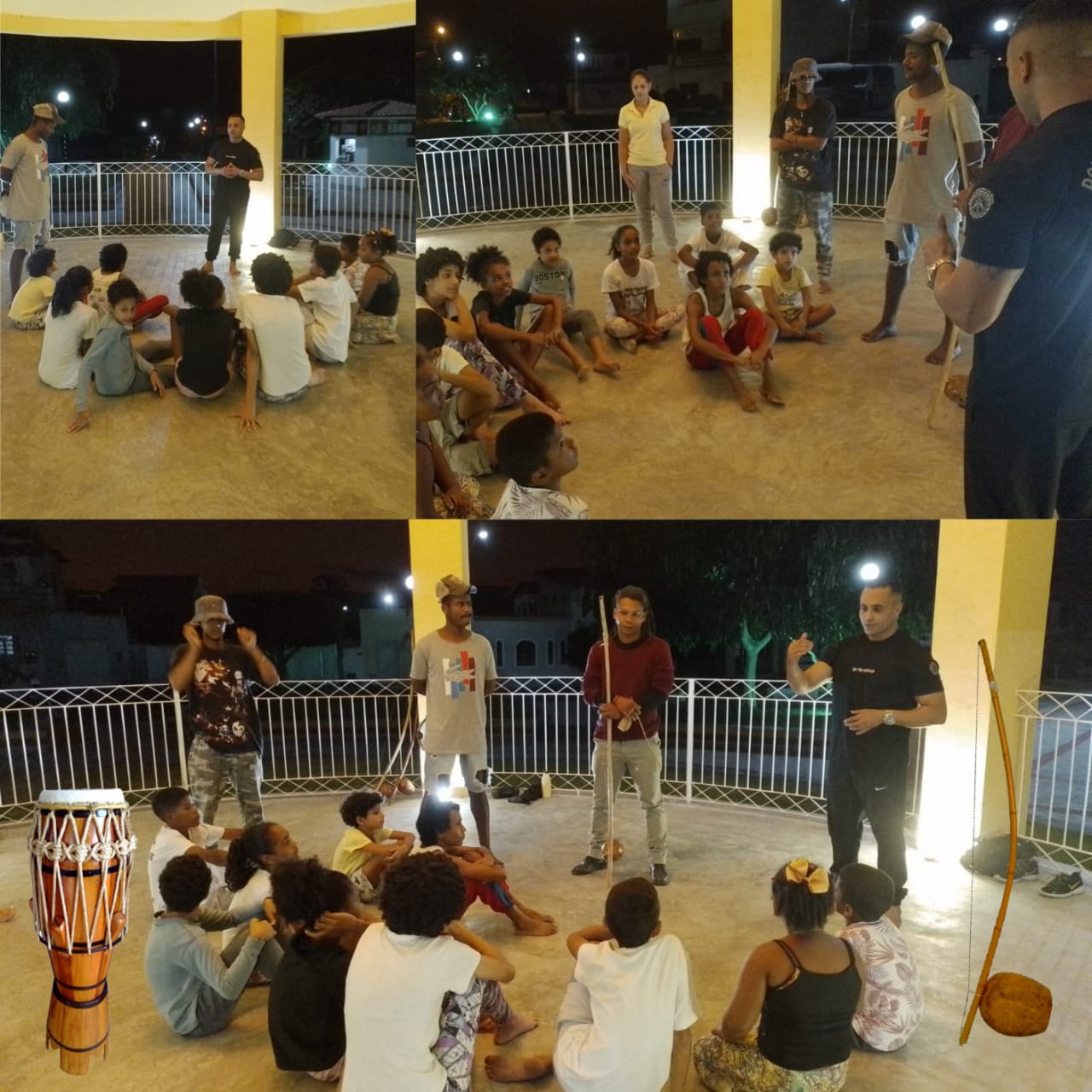 No último dia (19), um militar do 19º BPM destacado em Cravolândia sob o comando do Capitão Hianderson, participou de uma “roda de conversa” com os alunos do Projeto Capoeira na Praça.
