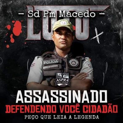 Na noite de ontem quinta-feira (18) a comunidade Militar baiana perdeu mais um herói, o Sd Pm Macedo estava na UTI do Hospital São Rafael desde que foi atingido com um tiro na cabeça durante uma ação na noite de quinta-feira (11/06), no bairro de Jardim Nova Esperança, enquanto lutava para a manutenção da Ordem e a segurança de Uma comunidade pobre de Salvador, fazendo a proteção de pretos pobres que em sua maioria ali reside, o “Homicídio” do policial, preto e de periferia ocorreu quando uma equipe da 50ª Companhia Independente fazia patrulhamento de rotina na Baixada da Marreta, localidade da Regional de Novo Marotinho, quando foi recebida a tiros por traficantes.